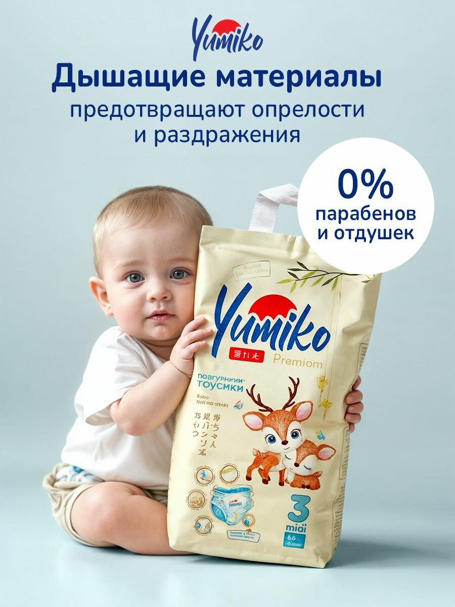 Подгузники трусики Yumiko 46 шт, японское качество, 3 размер M, 6-11 кг, детские, дневные и ночные интересное:
