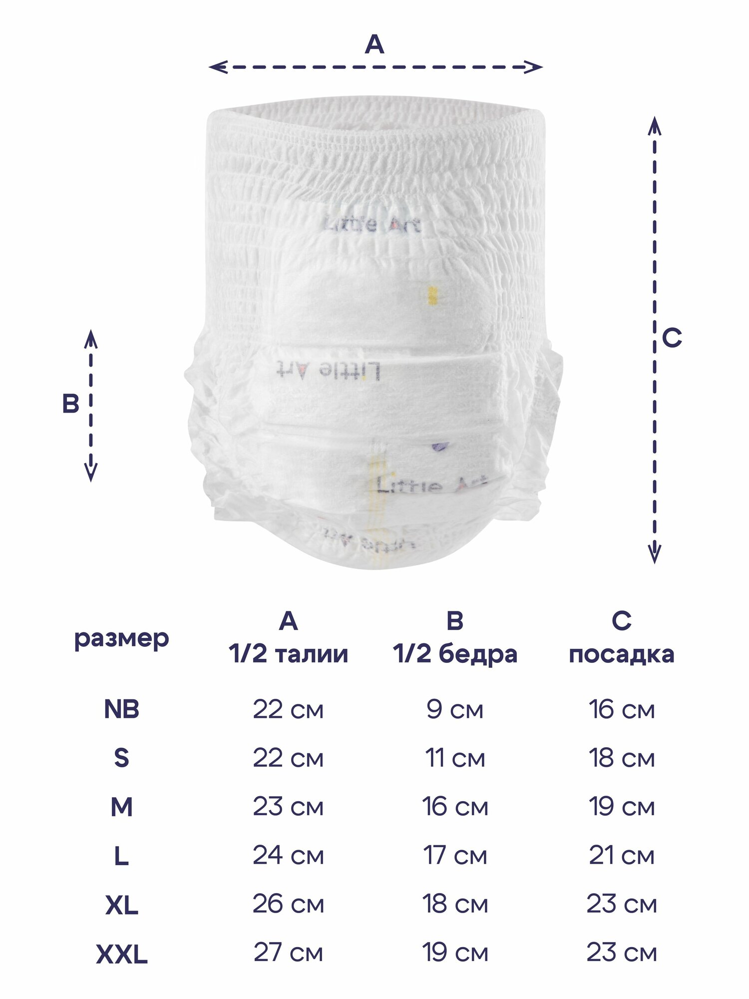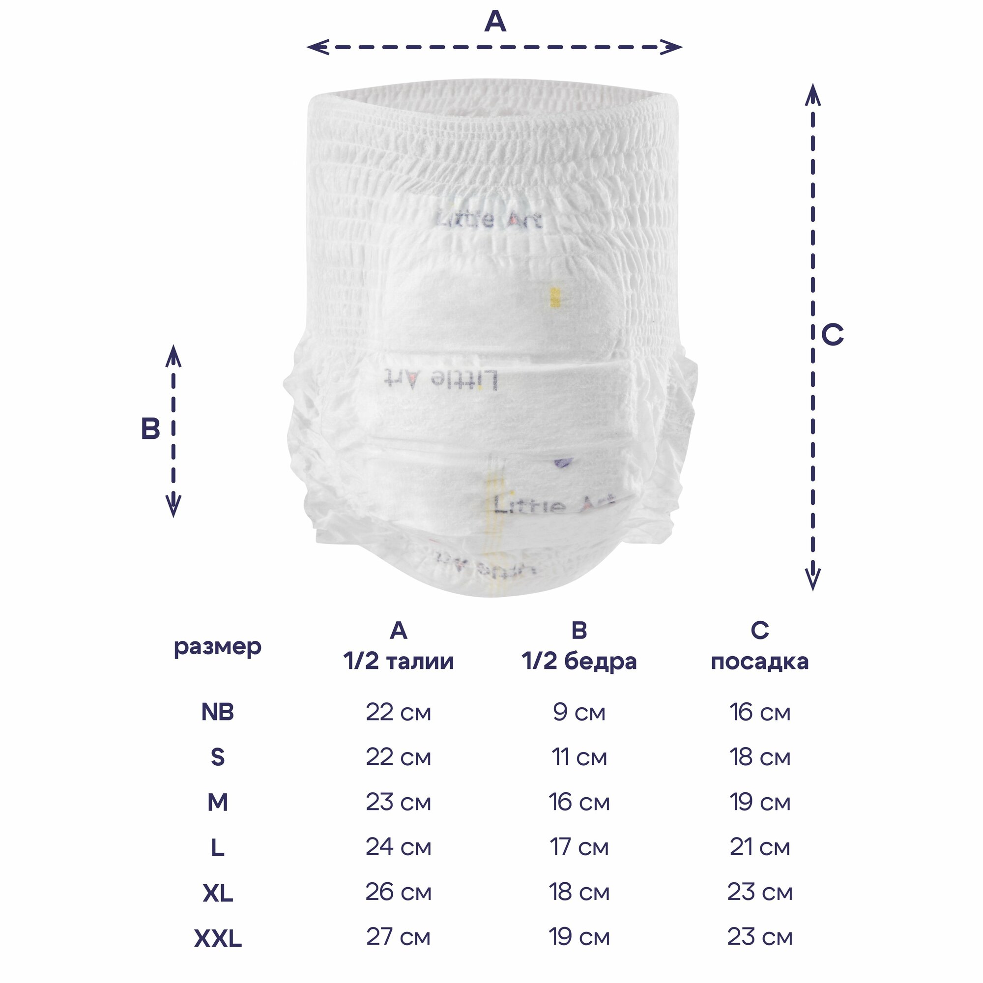 Купить Подгузники-трусики "Little Art", для детей, дышащие, впитывающие, белые, 38 шт.