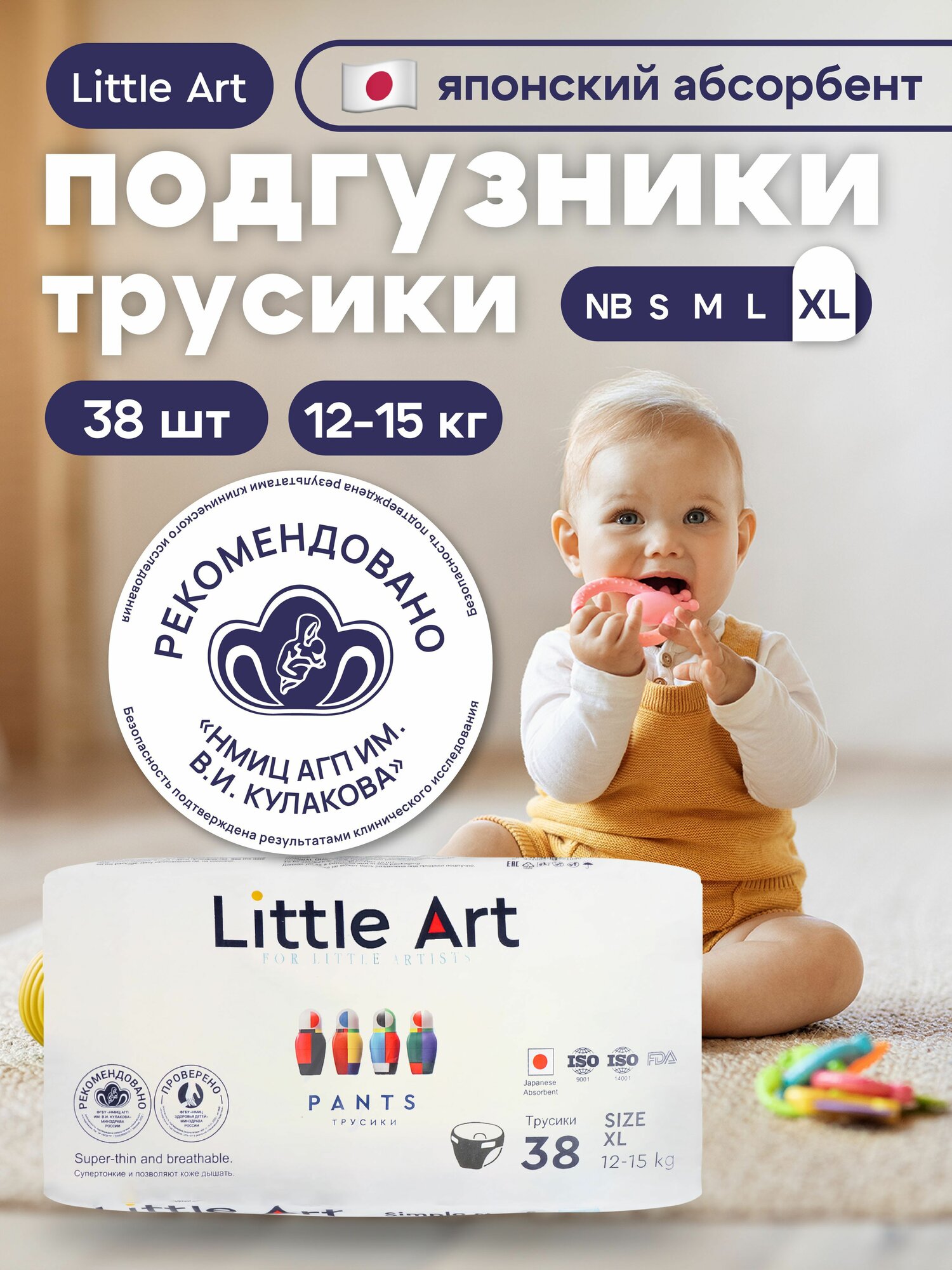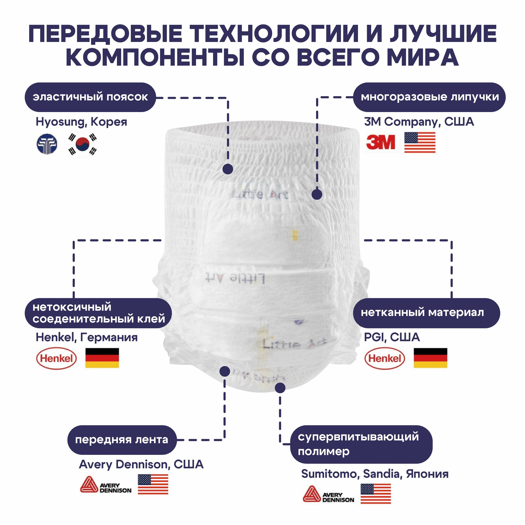 Подгузники-трусики "Little Art", для детей, дышащие, впитывающие, белые, 38 шт. интересное:
