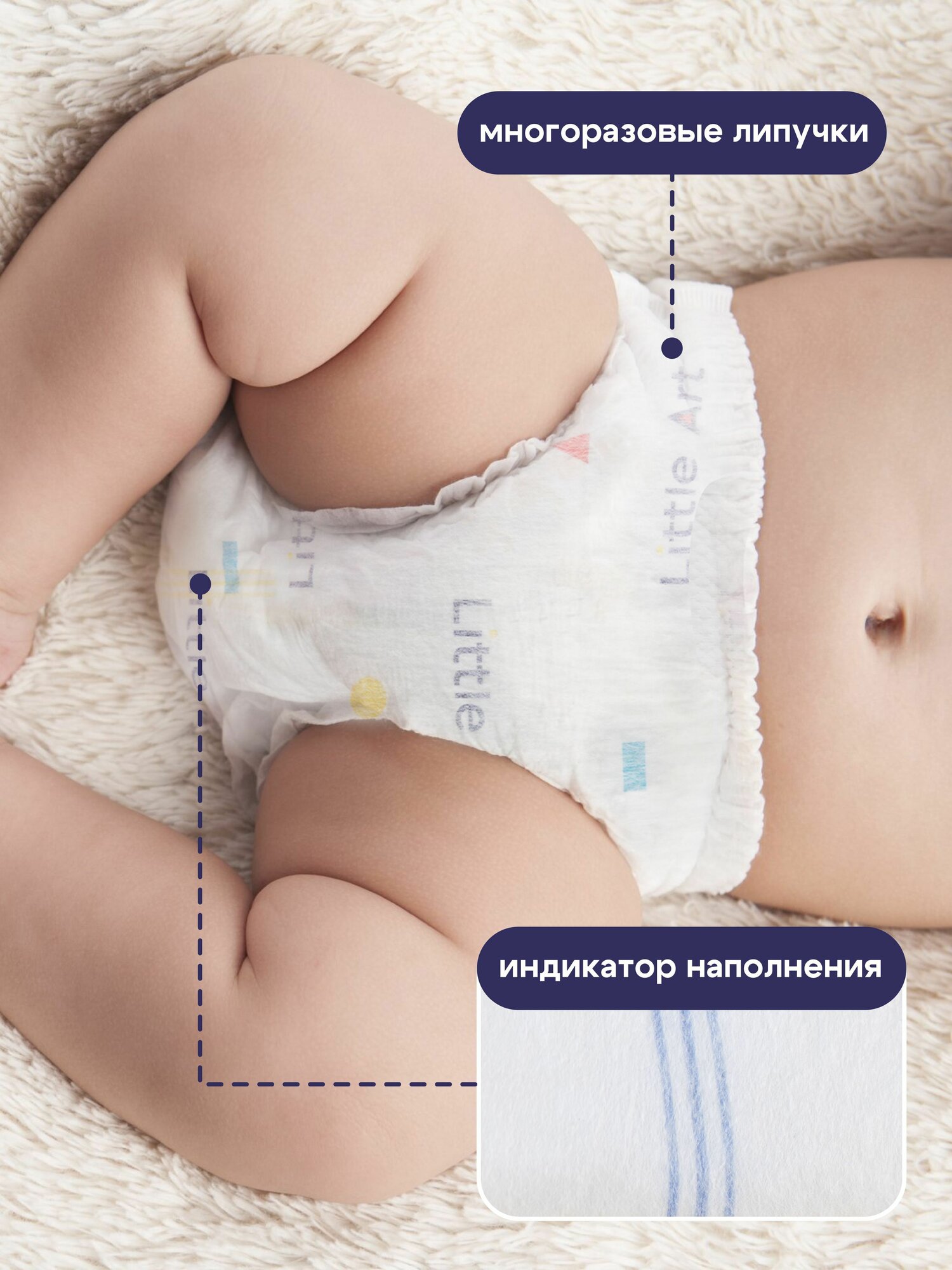 Подгузники-трусики LITTLE ART, 48 шт, размер M, 6-9кг, дышащие, для мальчиков и девочек