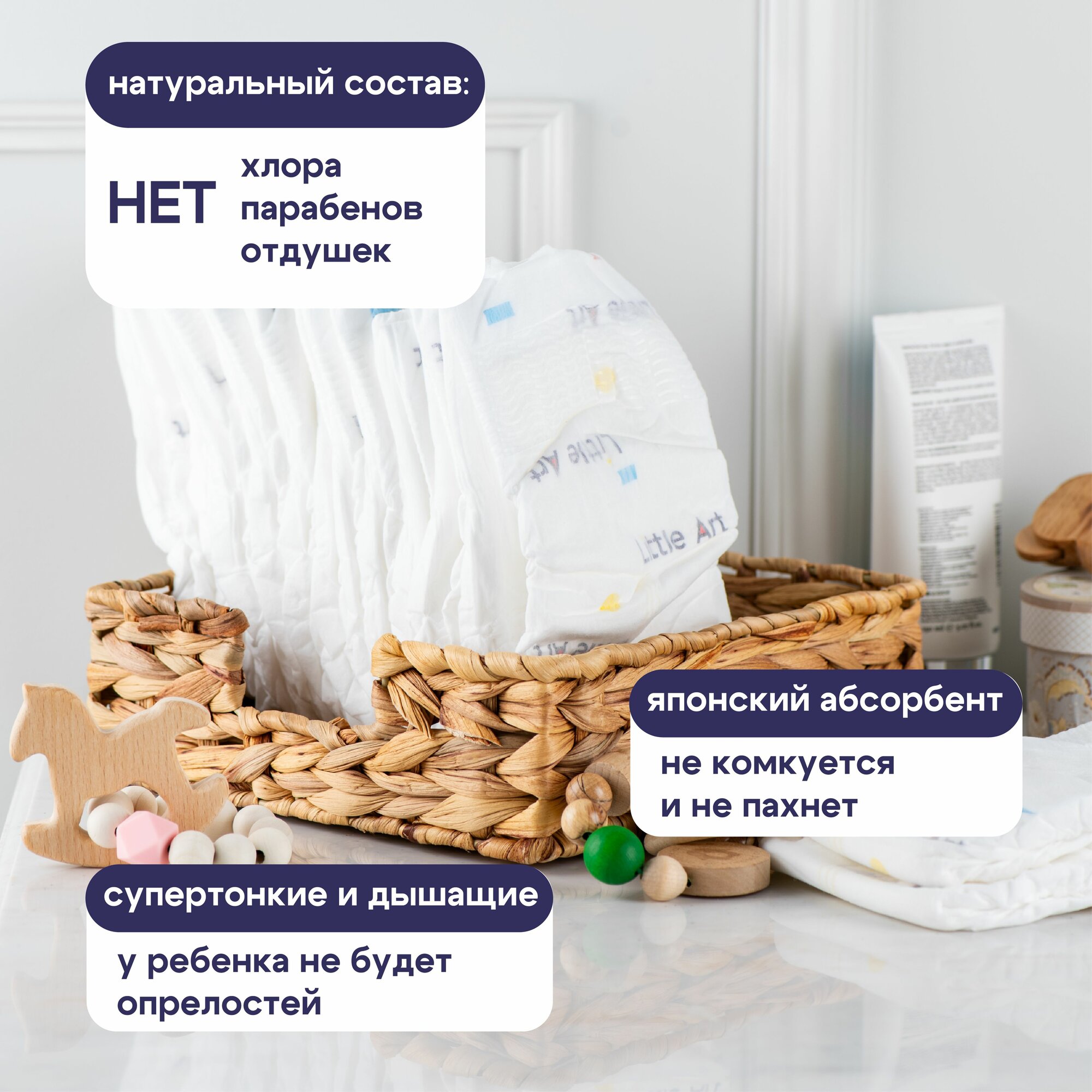 Подгузники Little Art S, дышащие, для чувствительной кожи, 66 шт.
