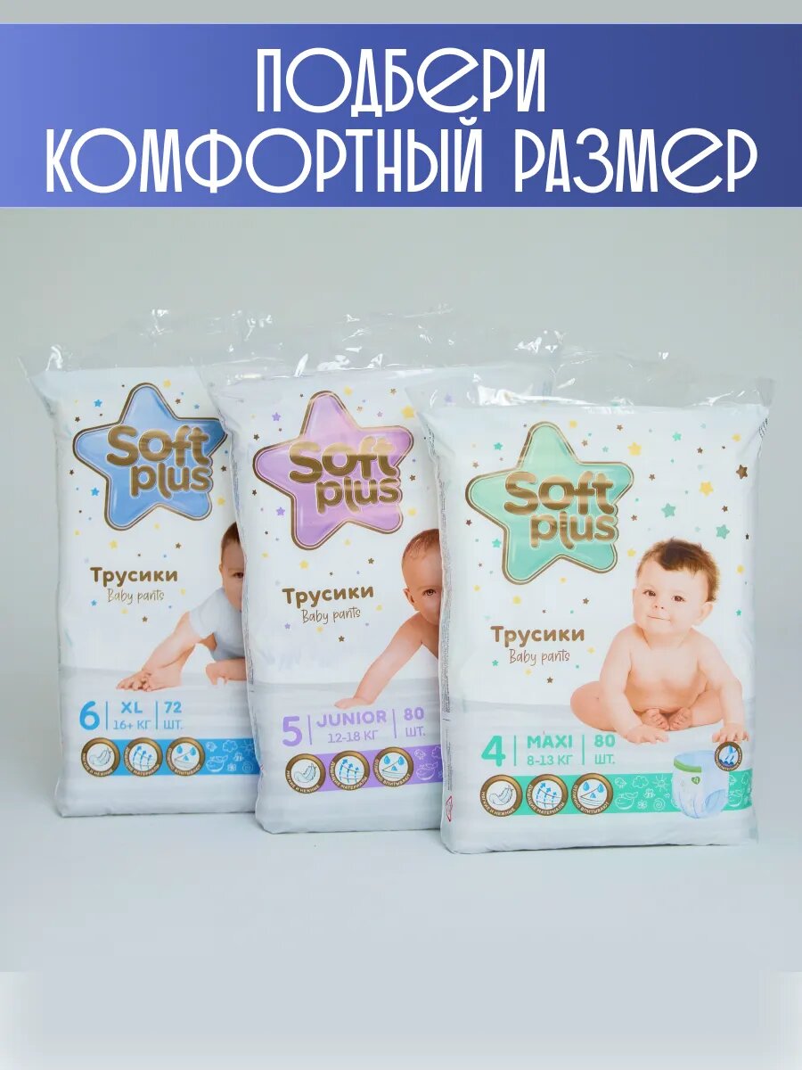 Подгузники-трусики Soft Plus, впитывающие каналы, 80 штук, 5 размер, 10-18 кг интересное: