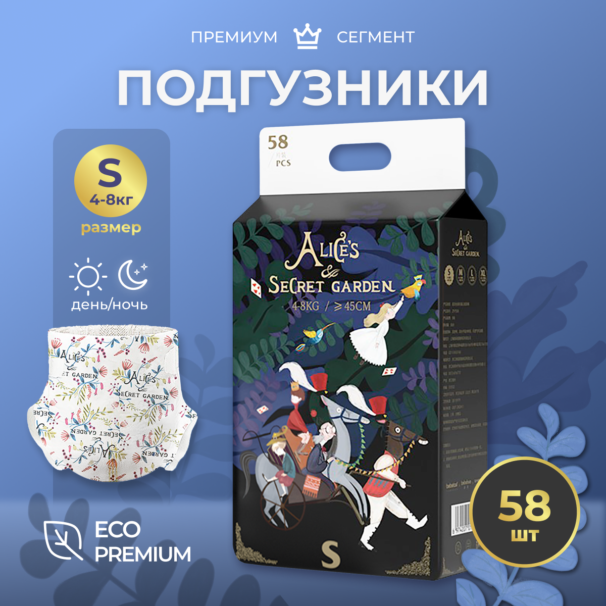 Купить Подгузники трусики Bebetour Alice's secret garden 2, размер S (4-8 кг.), 58 штук
