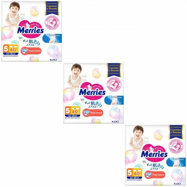Купить Merries Набор 3х Merries подгузники размер XL (12-20 кг), 40 шт