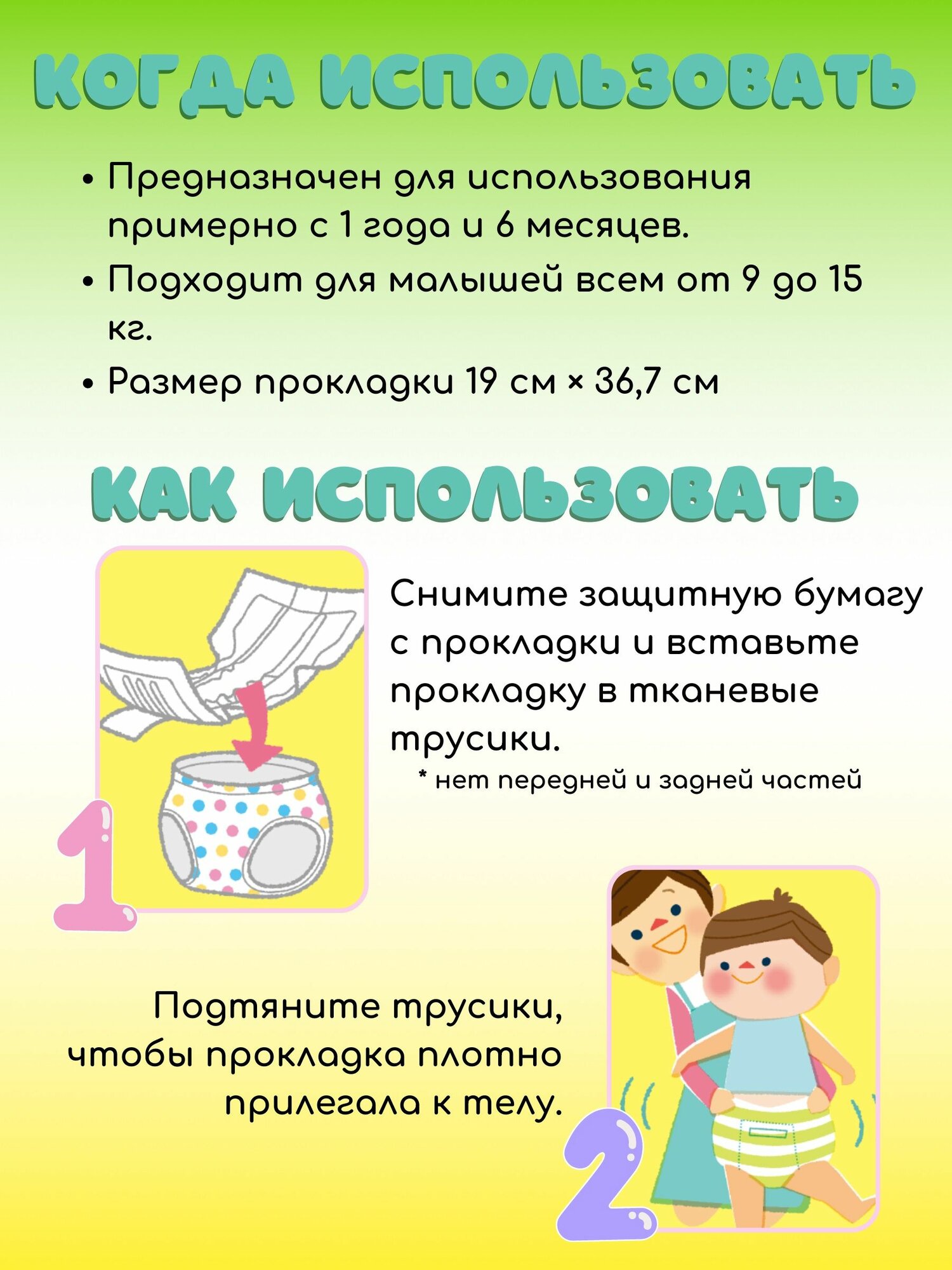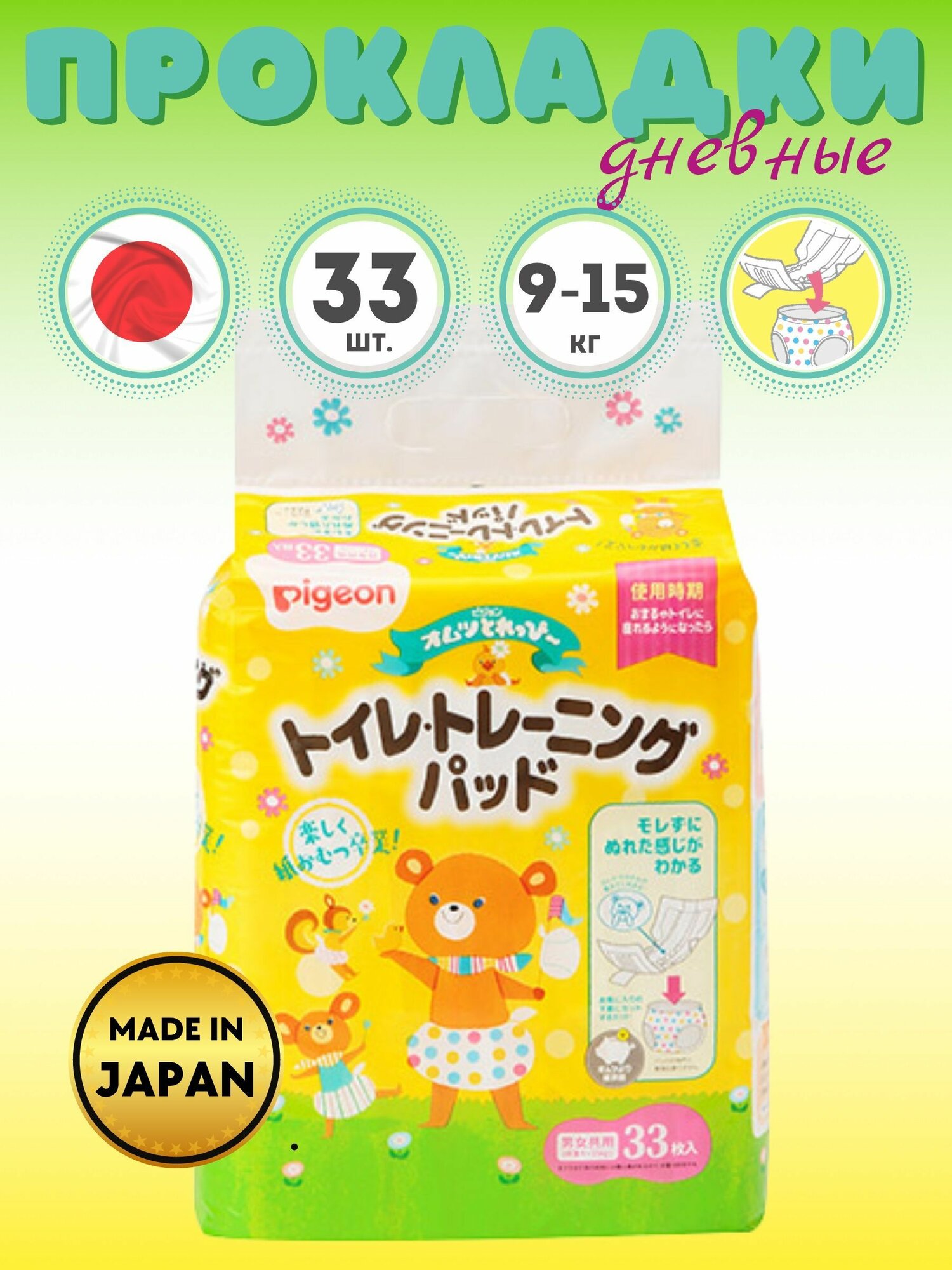 Подгузники-Прокладки для детей Pigeon дневные L (9-15кг),19 см х 36,7 см 33шт. интересное: