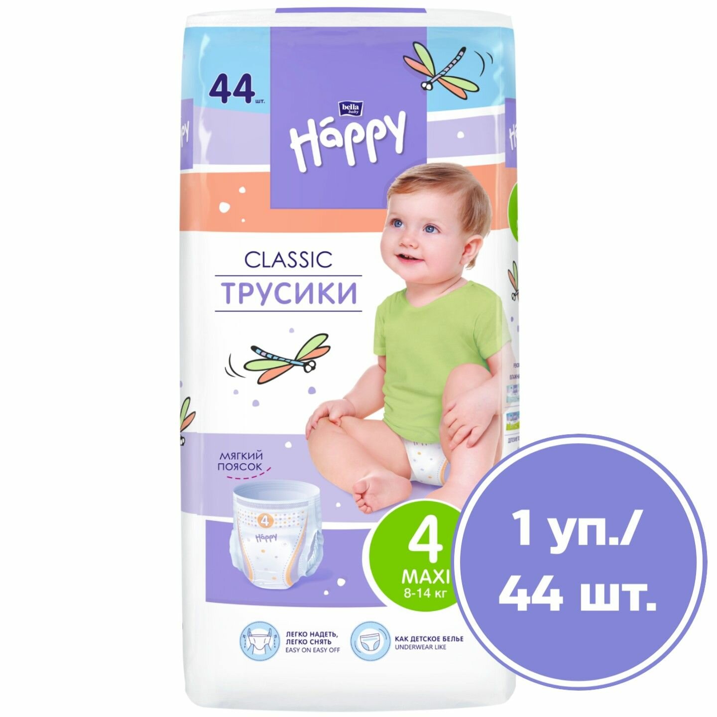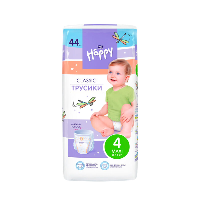 Трусики - подгузники детские bella baby Happy classic Maxi размер 4 (вес 8-14 кг), 44 шт. интересное: