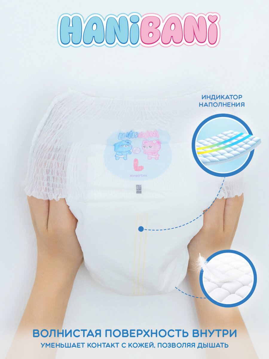 Подгузники трусики размер 4 L детские, HANIBANI Comfort (9-14 кг), 40 шт