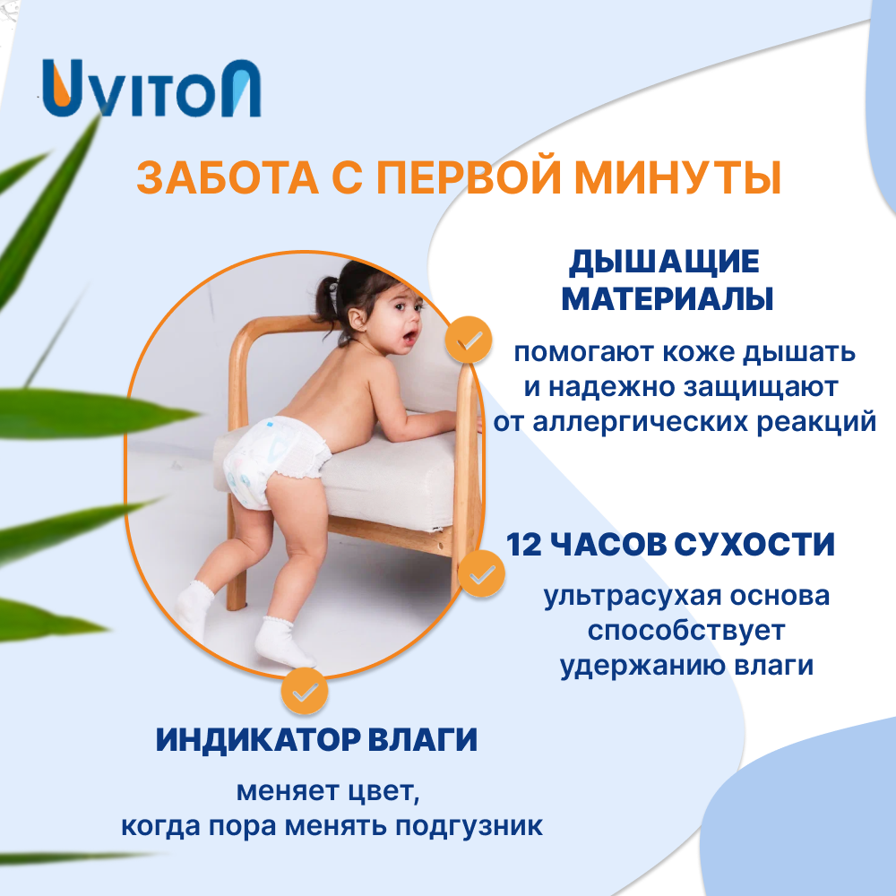 Подгузники для новорожденных 2-6 кг, 1 размер, 4 шт в инд уп