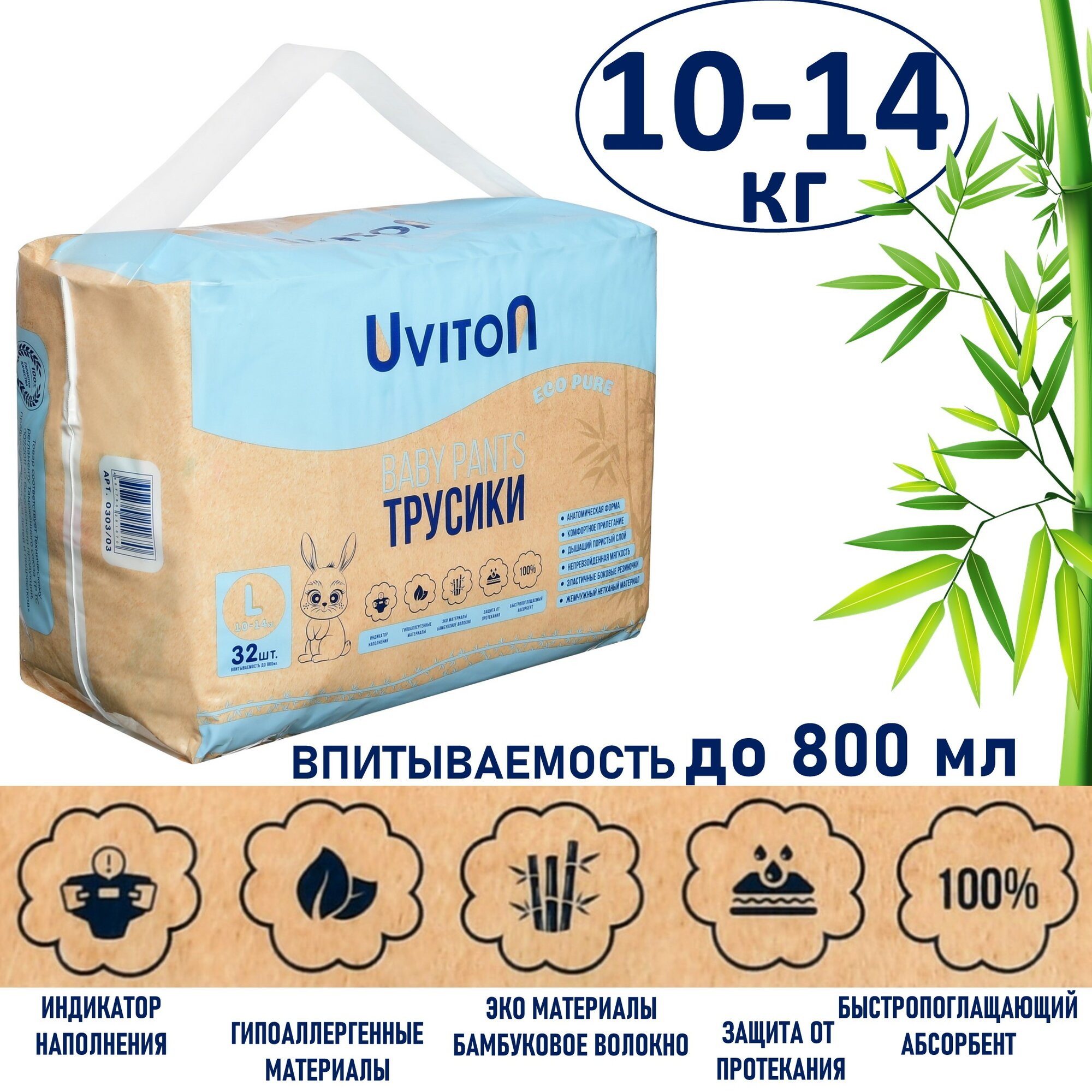 Купить Подгузники-трусики детские размер L (10-14кг.) 32шт