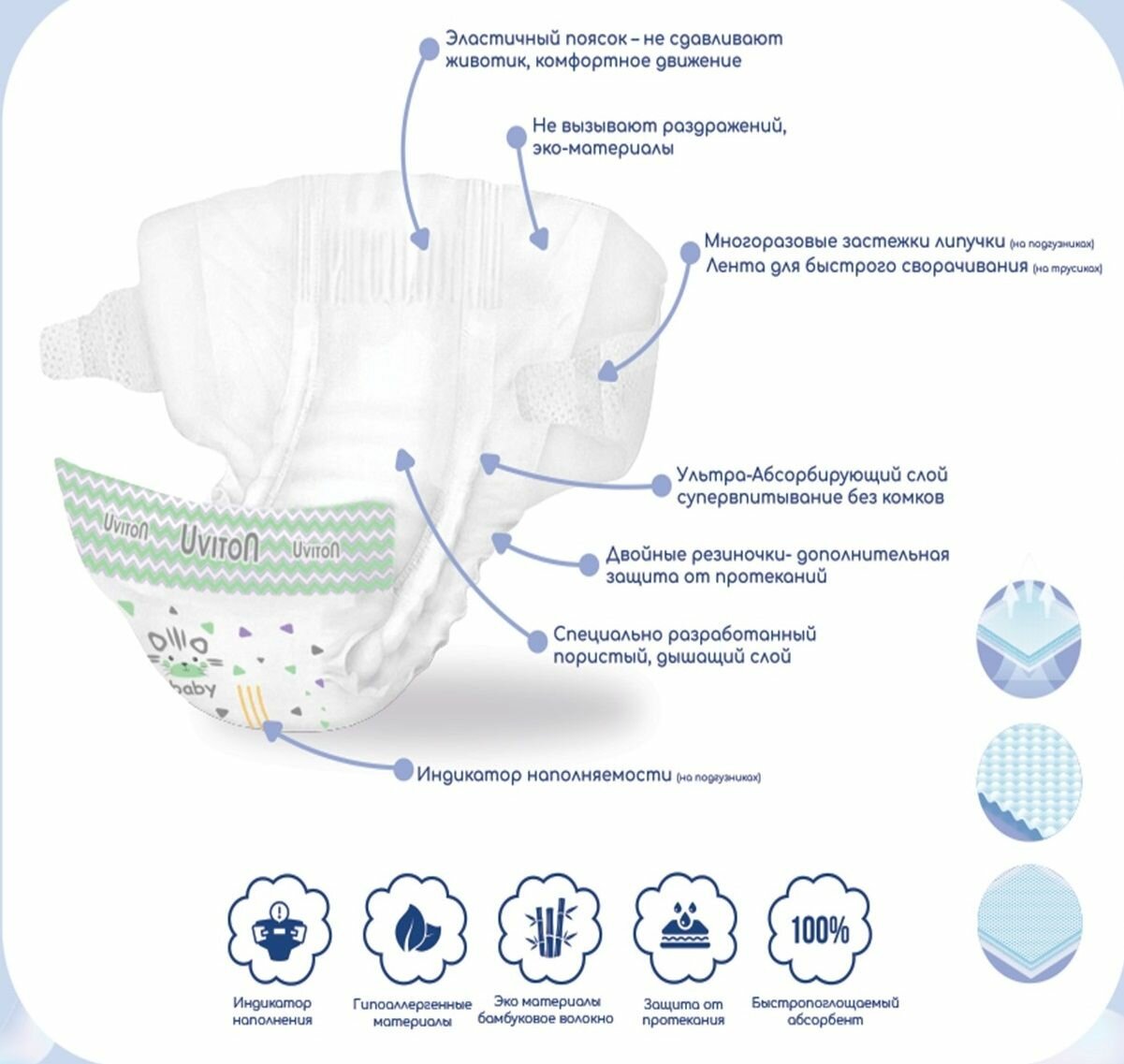 Подгузники для новорожденных 2-6 кг, 1 размер, 4 шт в инд уп
