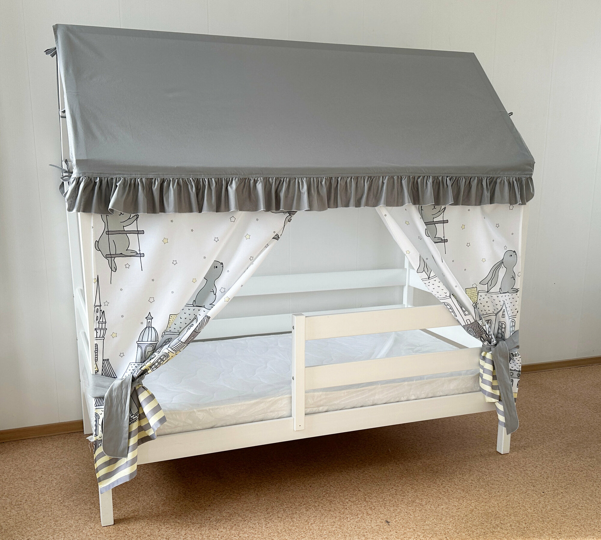 Текстиль на кровать домик 80х160 см (зайчики-серый) ТД-27-new