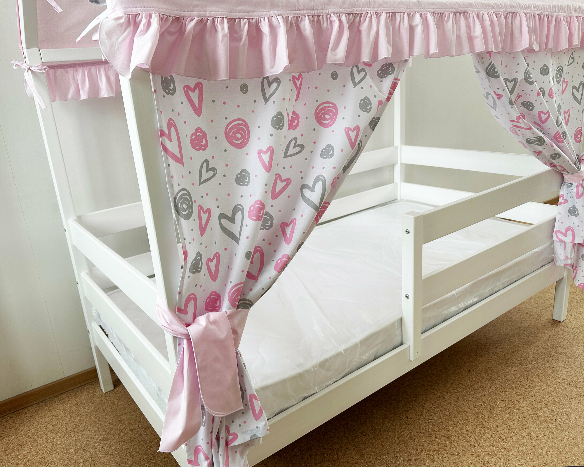 Текстиль на кровать домик 80х160 см (сердечки-серый) ТД-25