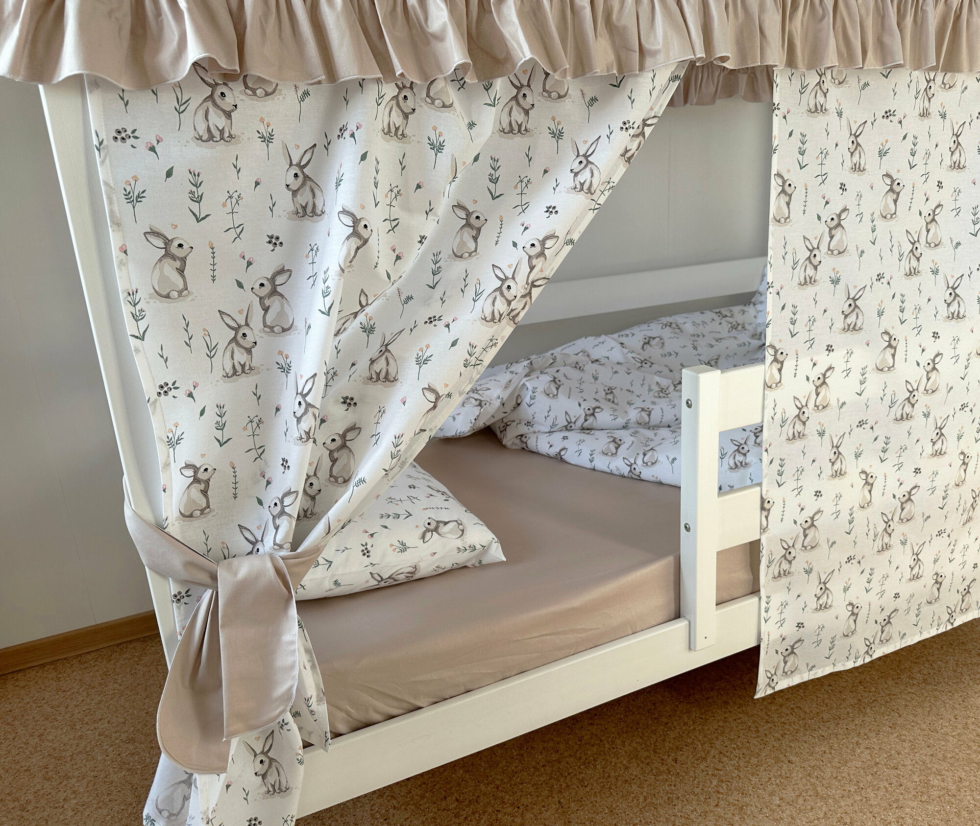 Текстиль на кровать домик 80х160 см (серый купон-зайцы) ТД-34