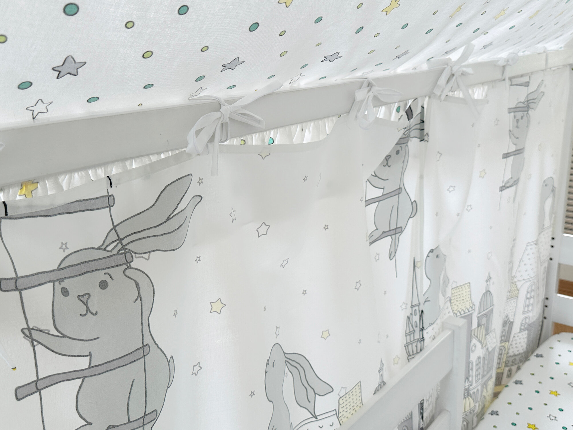 Текстиль на кровать домик 80х160 см (серый купон-зайцы) ТД-34