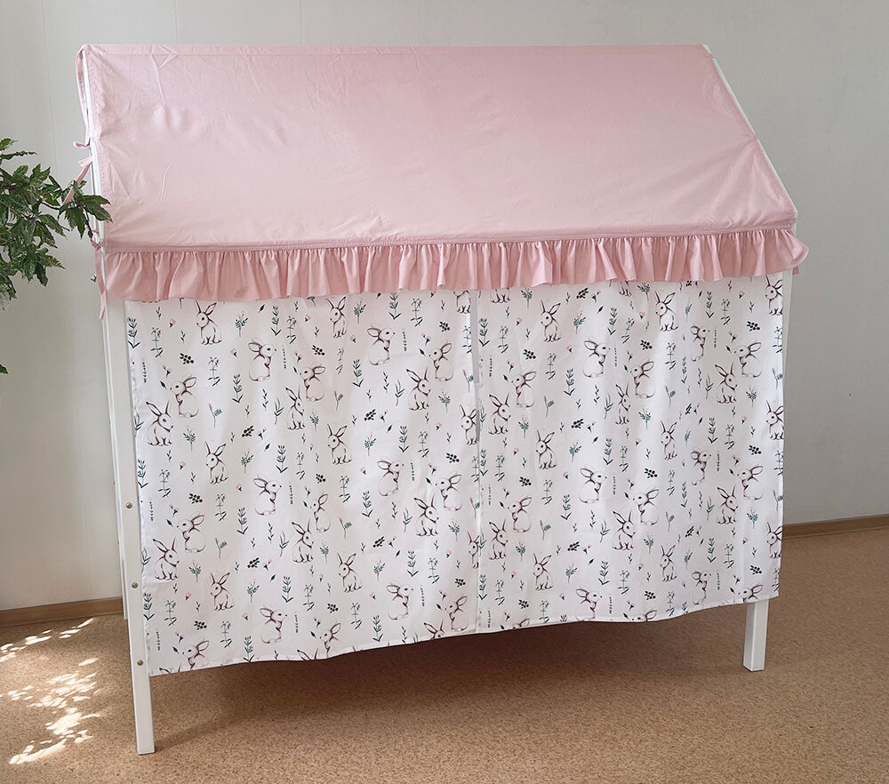 Текстиль на кровать домик 80х160 см (зайцы/розовый) ТД-39