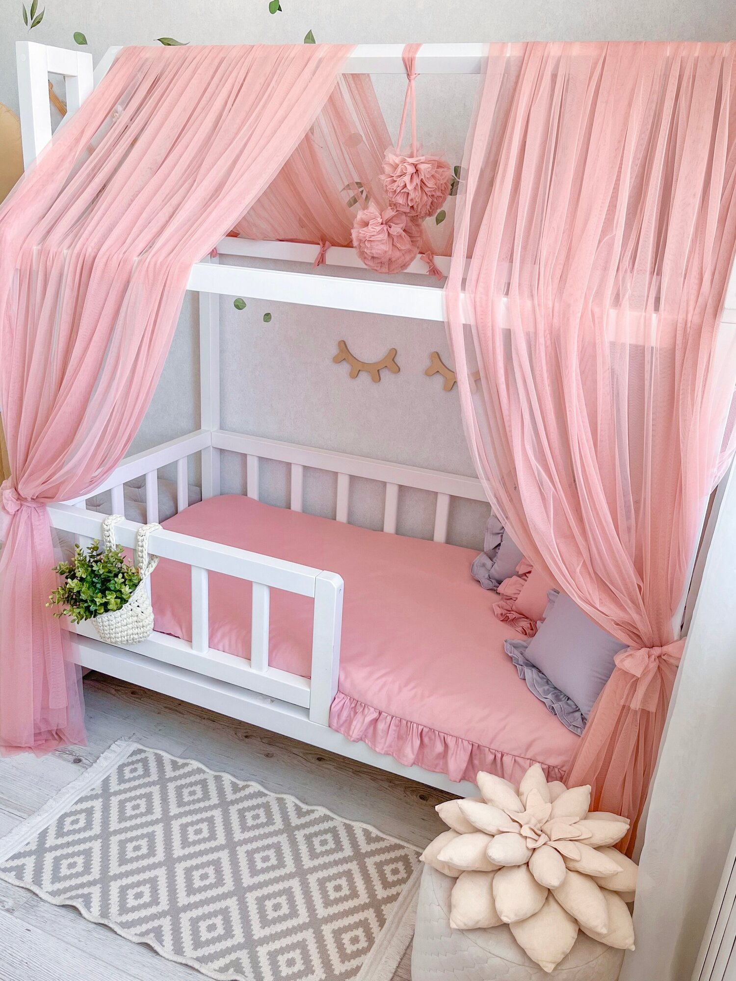 Балдахин на кроватку домик 80/160 см, размер М - нежная пудра интересное: