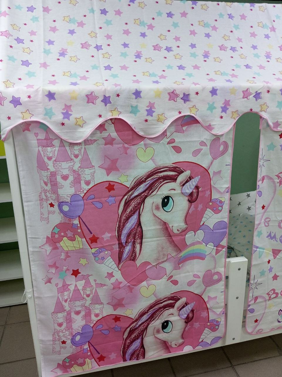 Купить Комплект Крыша - Балдахин и Шторки. Текстиль (100% хлопок) Для кровати Домика 160 х 80/160 х 70 см (Мечта 3)