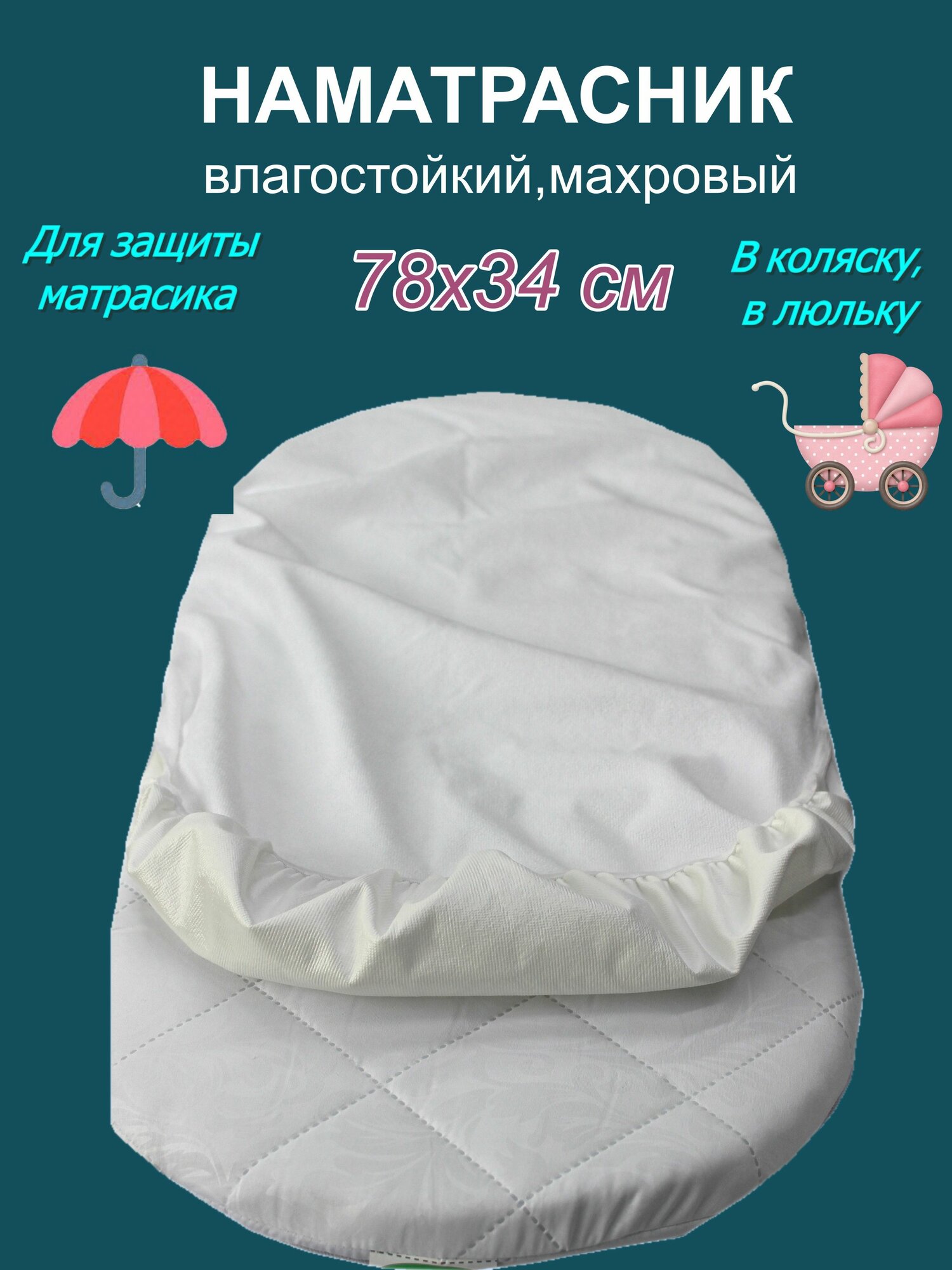 Влагостойкий наматрасник для матрасика в коляску, в люльку 78х34 см интересное: