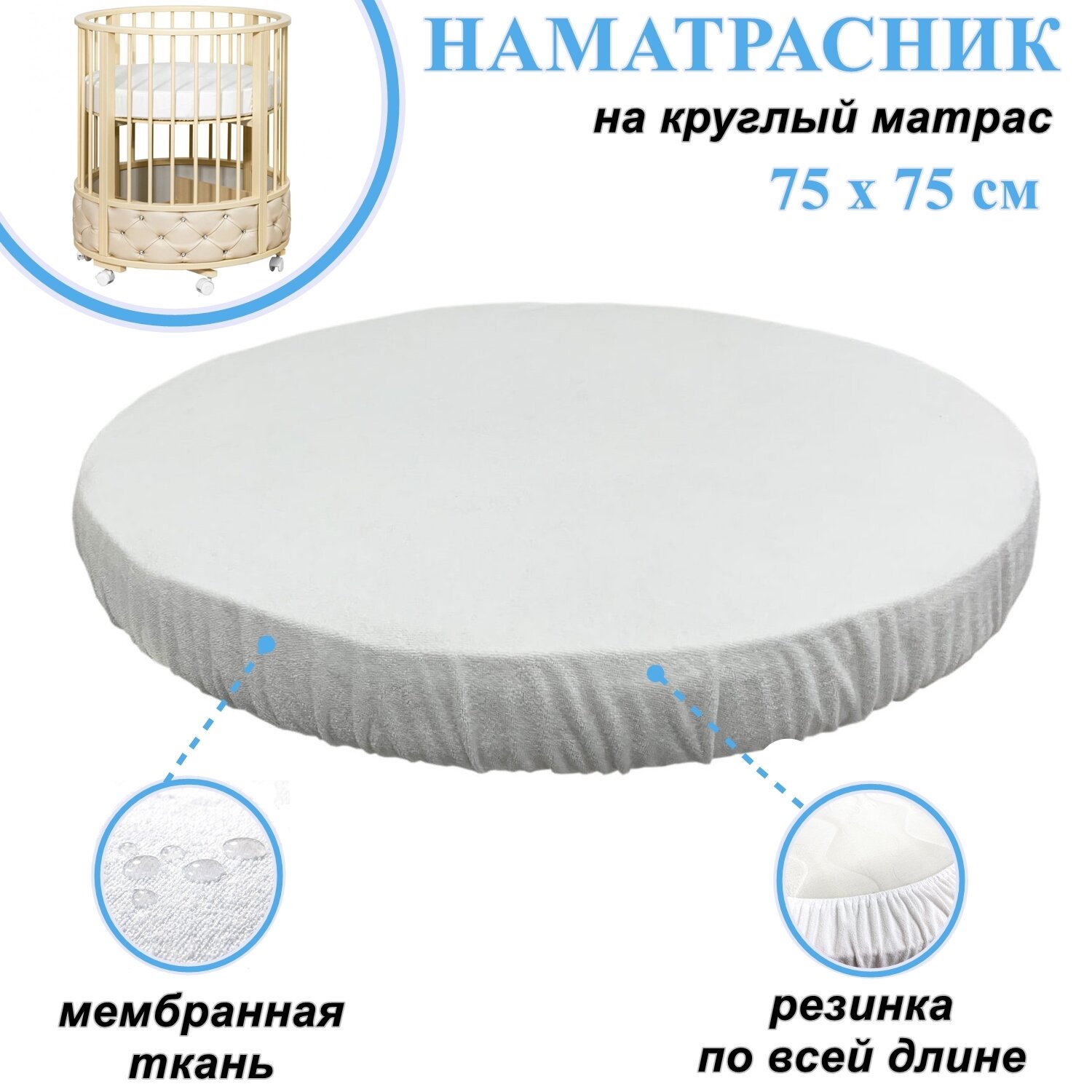 Непромокаемый наматрасник круглый Premium 75х75 на резинке интересное: