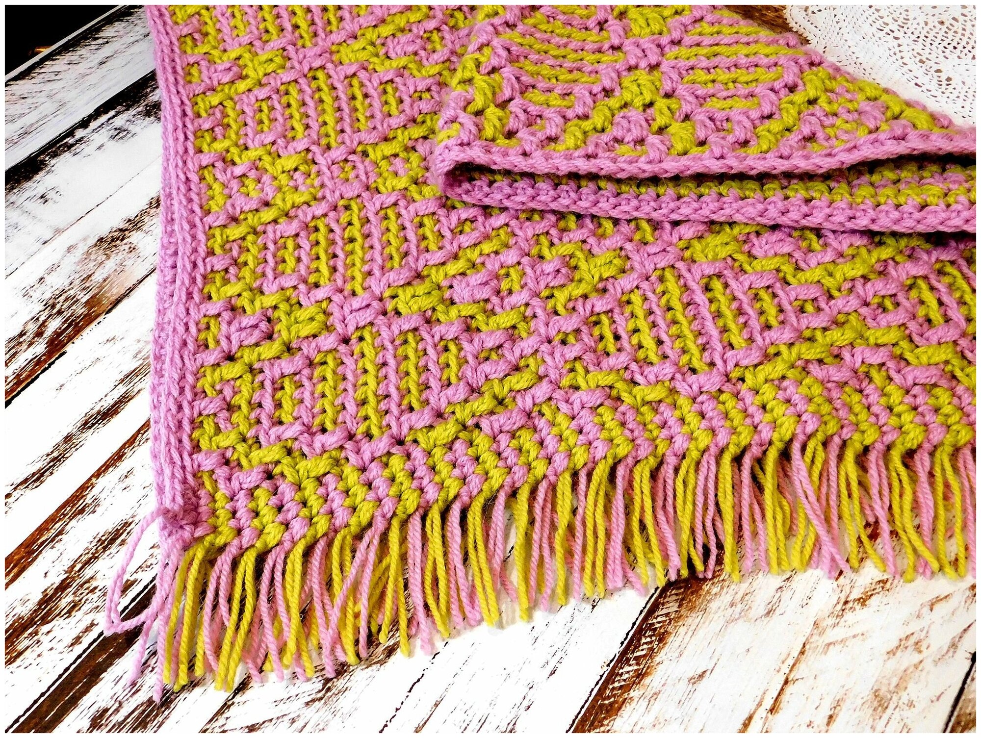 Купить Накидка вязаная в детскую коляску для новорожденного "Мозаика" желто-розовая, 83х45 см, ручная работа