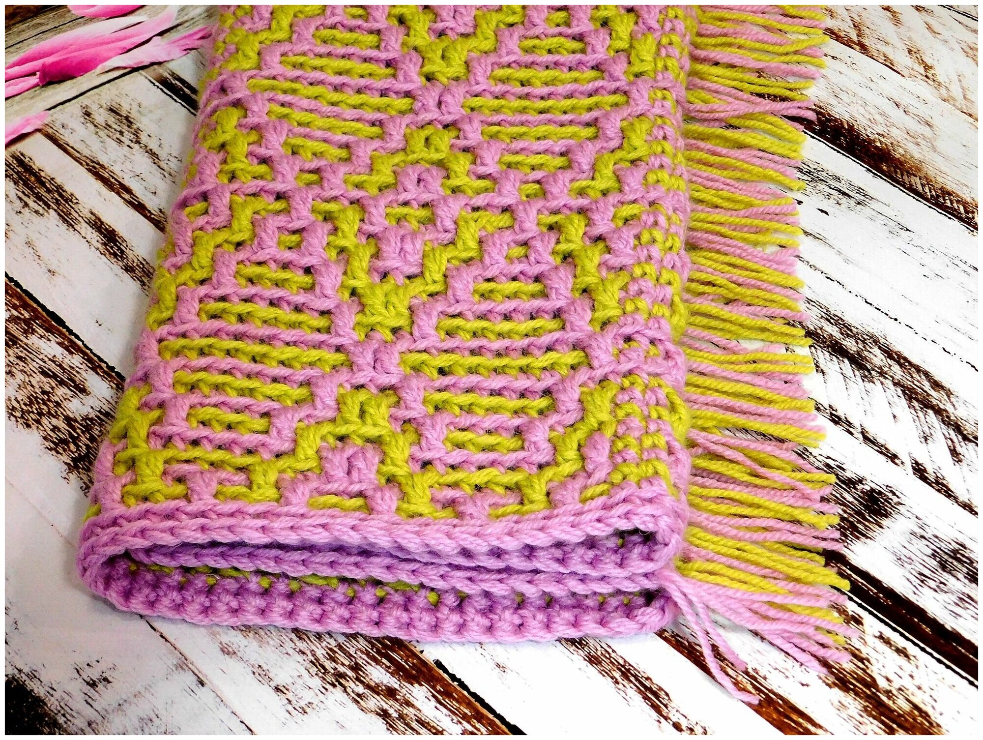 Накидка вязаная в детскую коляску для новорожденного "Мозаика" желто-розовая, 83х45 см, ручная работа интересное:
