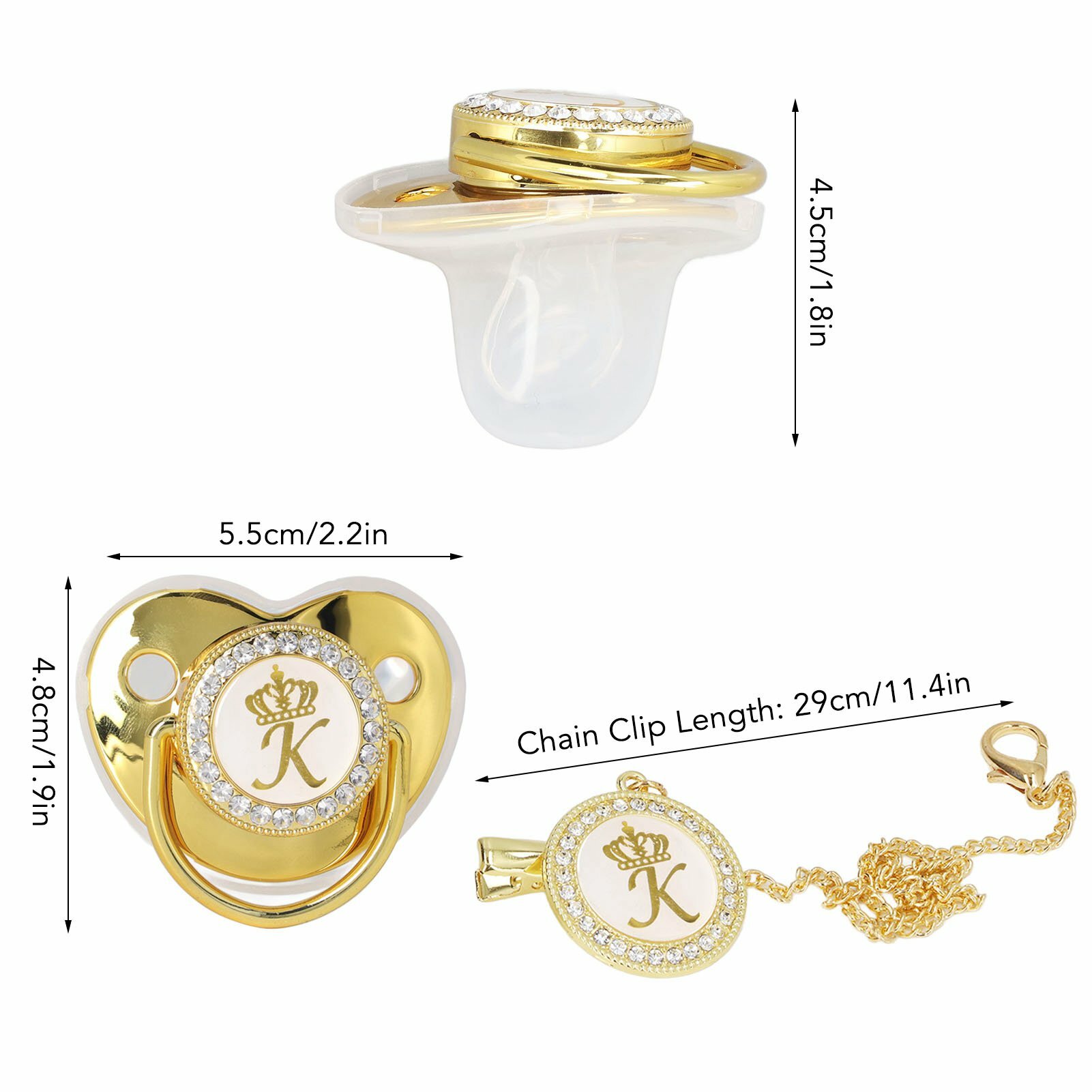 Baby Pacifier Infant Portable Exquisite Golden Crown Letter Rhinestone with Chain Clip K интересное: