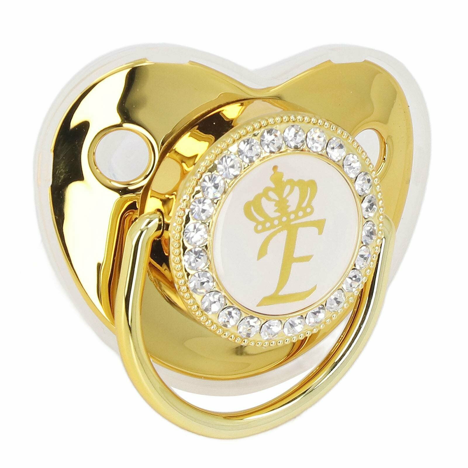 Baby Pacifier Infant Portable Exquisite Golden Crown Letter Rhinestone with Chain Clip E интересное: