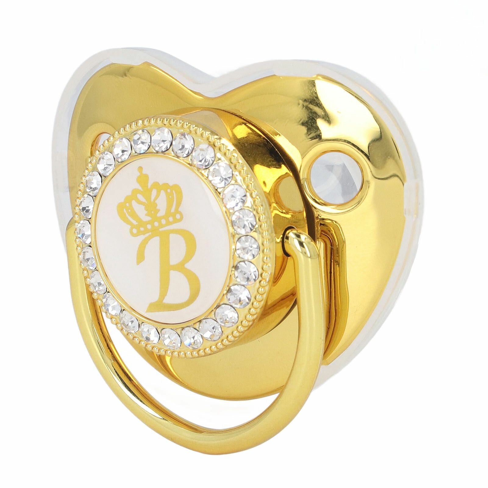 Купить Baby Pacifier Infant Portable Exquisite Golden Crown Letter Rhinestone with Chain Clip B