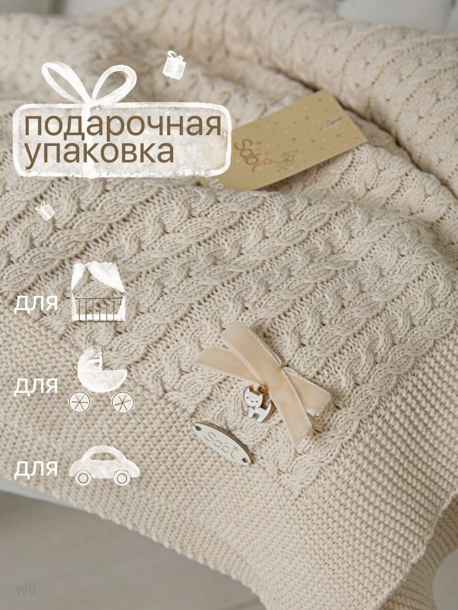 Плед Sabi SARABARA, для новорожденных, хлопок, вязаный интересное: