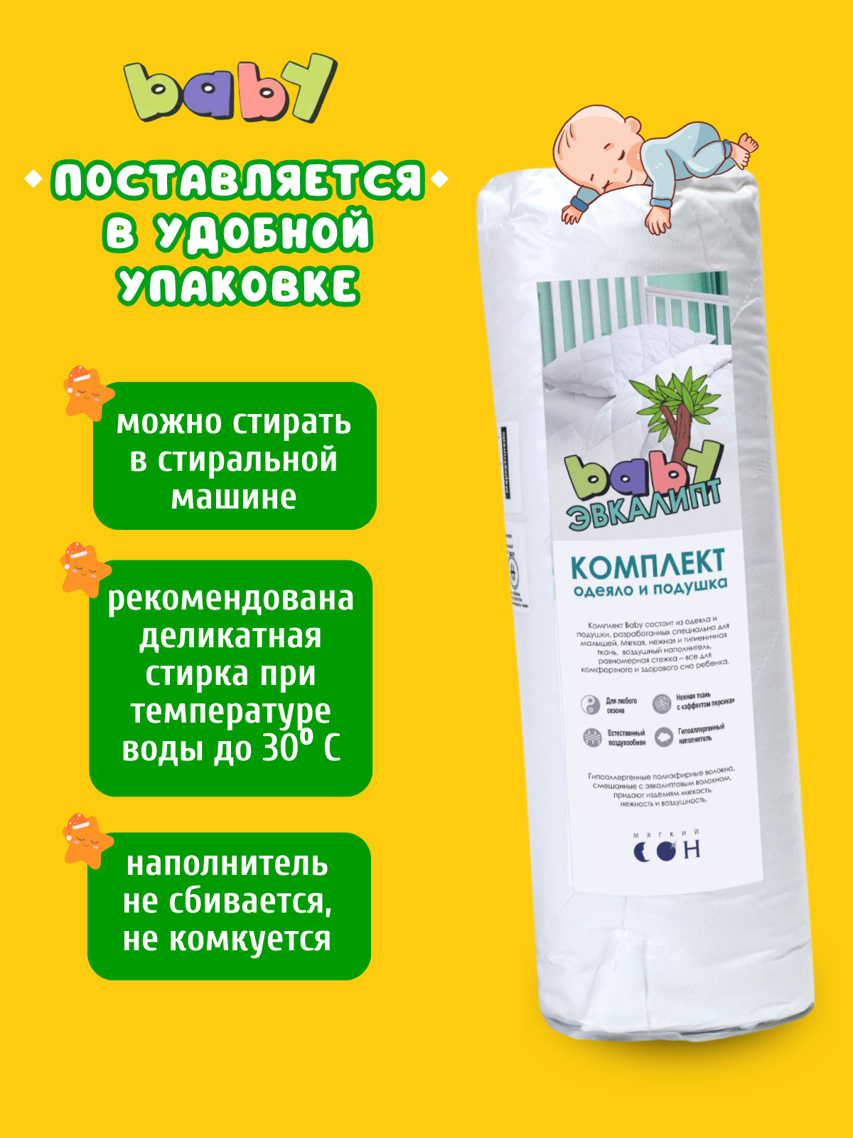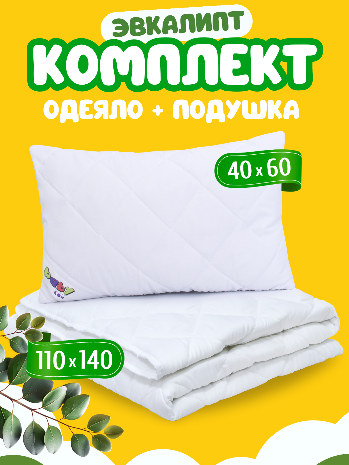 Комплект одеяло и подушка, одеяло детское 110х140 см + подушка детская 40х60 см, Эвкалипт, для детей, съемный чехол интересное: