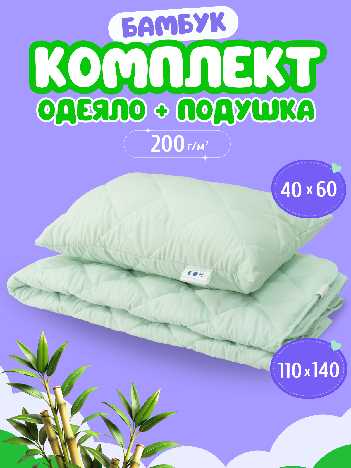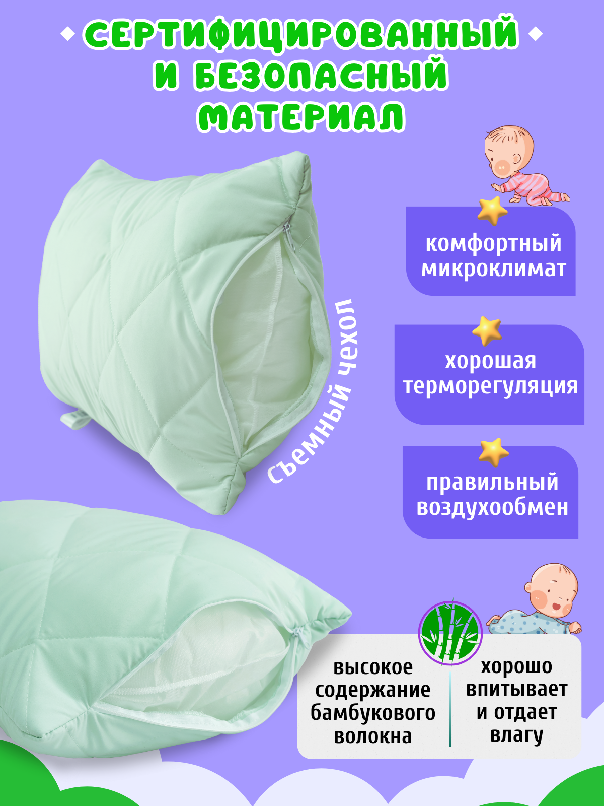 Комплект одеяло и подушка, детский, 110х140 см + 40х60 см, Бамбук, для детей, для новорожденных интересное: