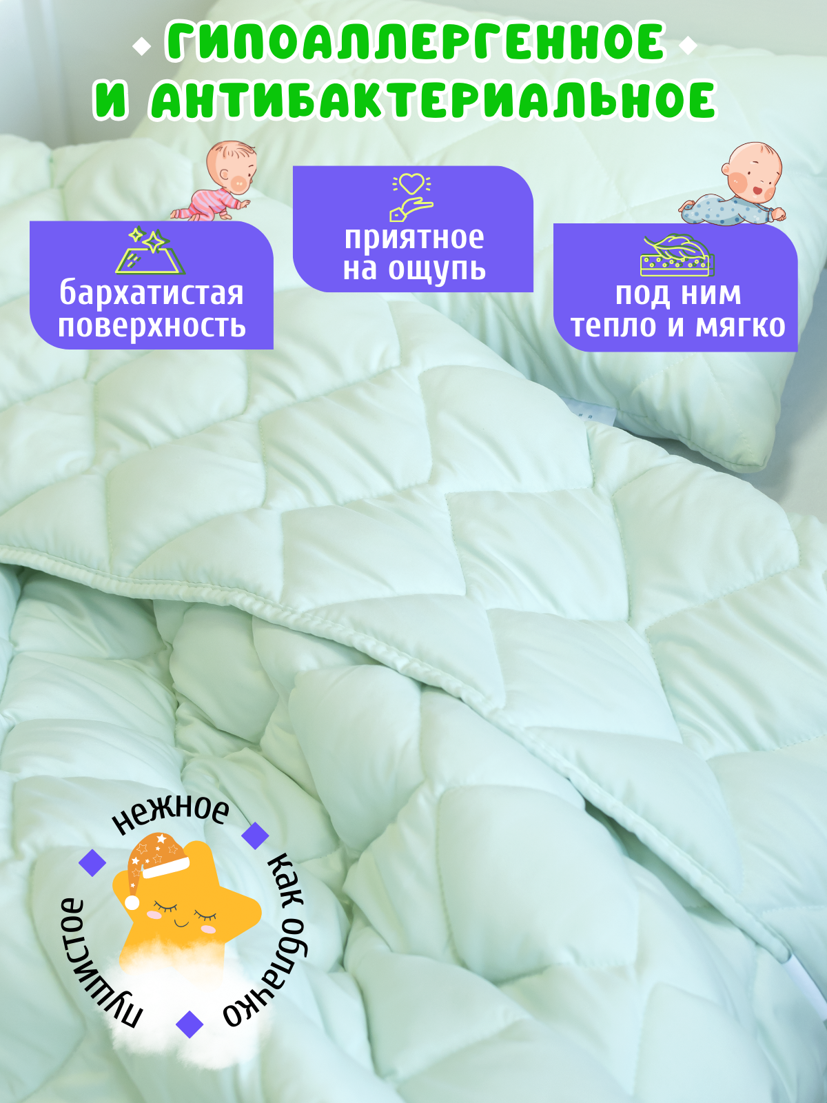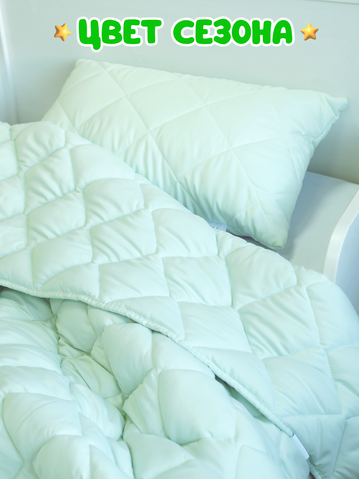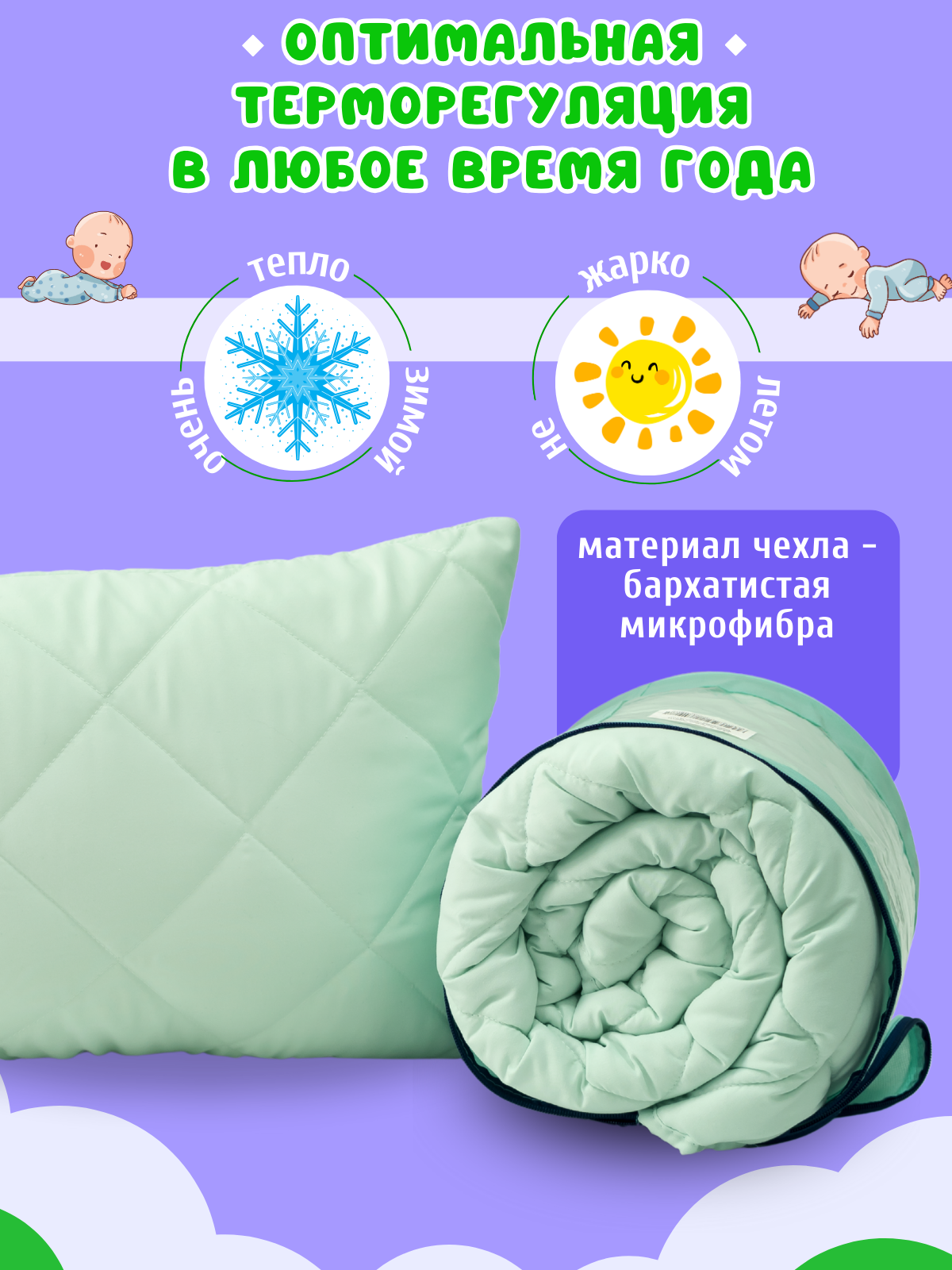 Комплект одеяло и подушка, одеяло детское 110х140 см + подушка детская 40х60 см, Эвкалипт, для детей, съемный чехол