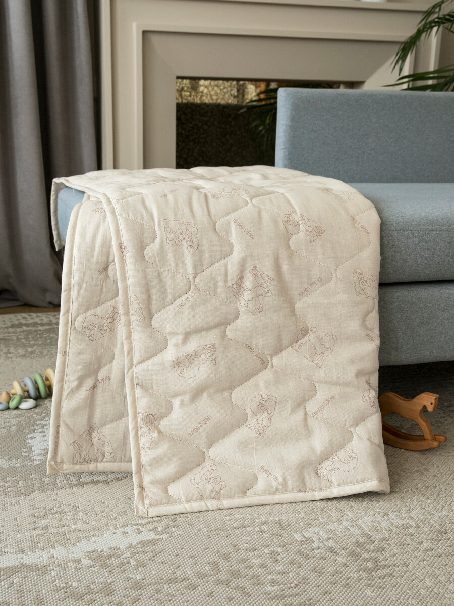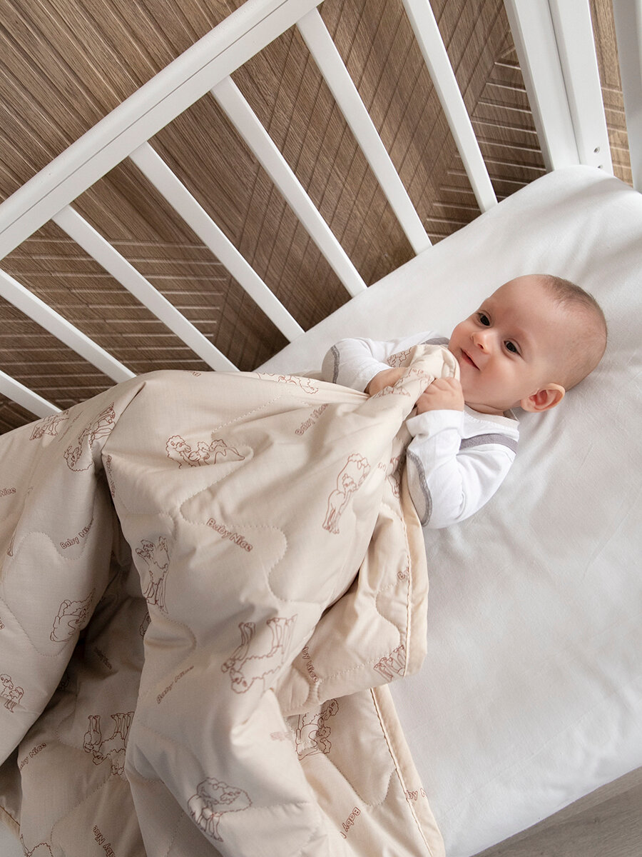 Одеяло детское 105х140 верблюжья шерсть (300гр), теплое для новорожденного в кроватку и коляску интересное: