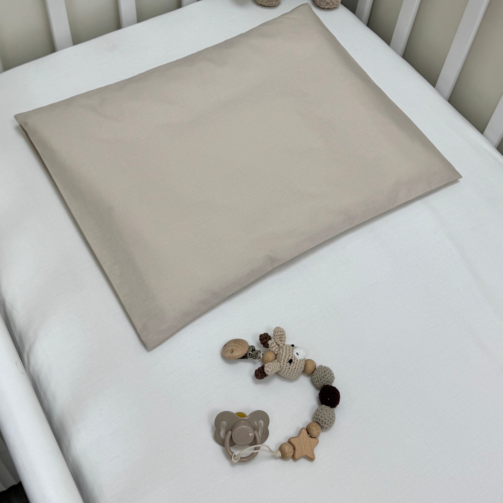 Подушка с наволочкой для новорожденного MamiBro, размер 30х40 см, светло бежевый