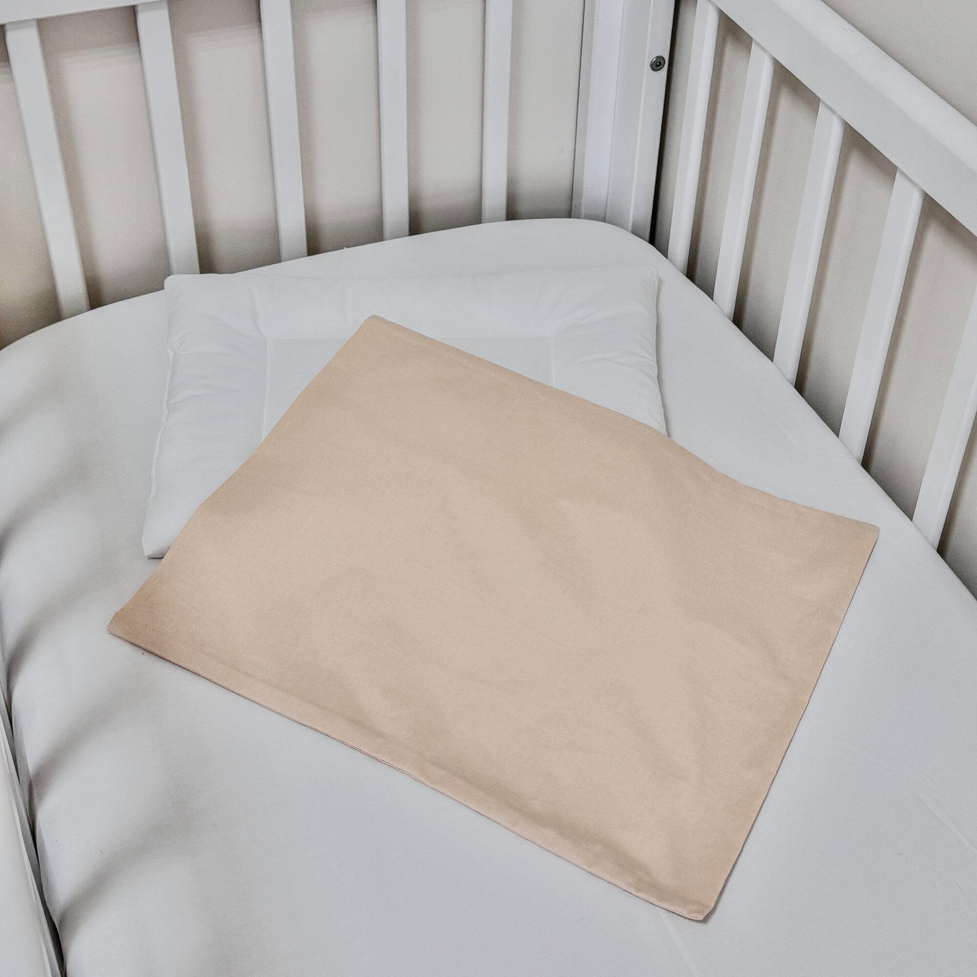 Подушка с наволочкой для новорожденного MamiBro, размер 30х40 см, пыльный бежевый