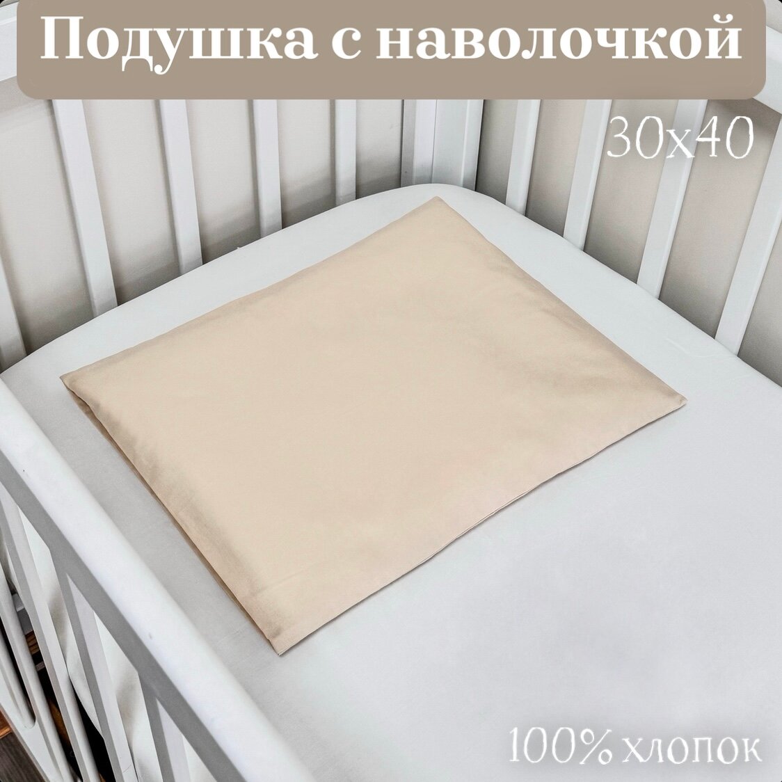 Купить Подушка с наволочкой для новорожденного MamiBro, размер 30х40 см, светло бежевый