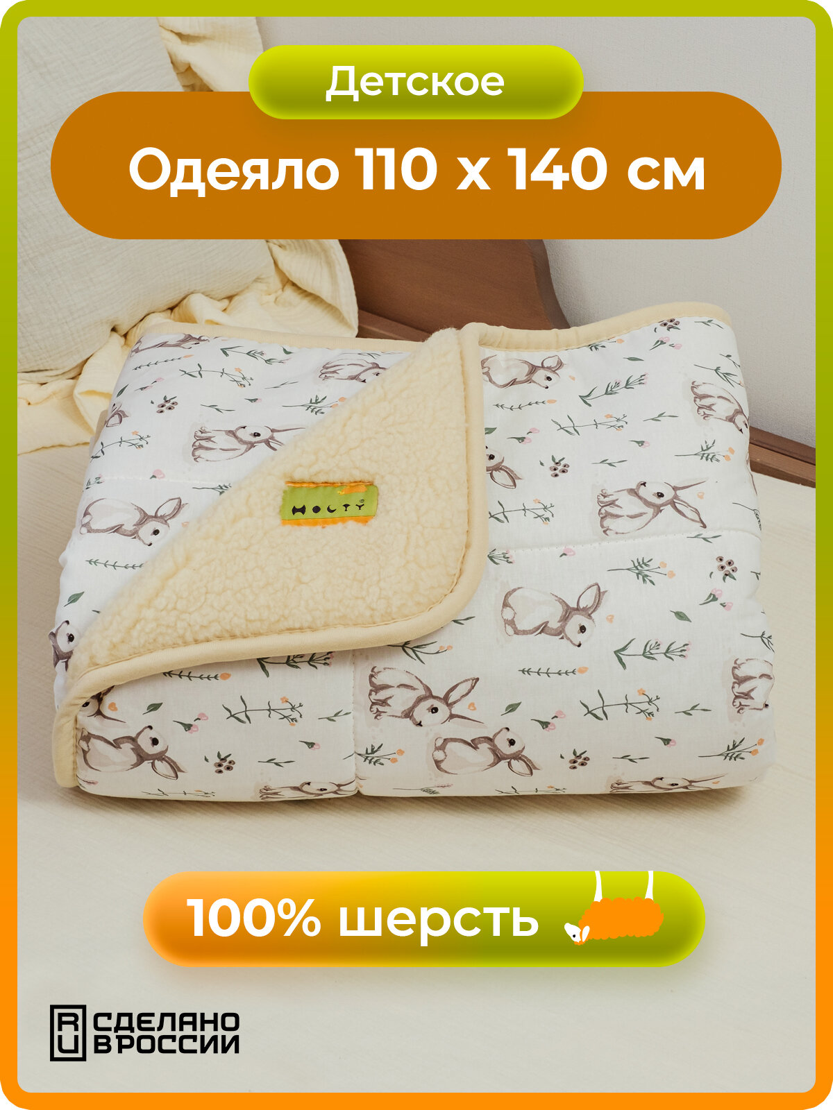 Одеяло из шерсти детское холти Фантазия (110*140), зайчики , белый интересное: