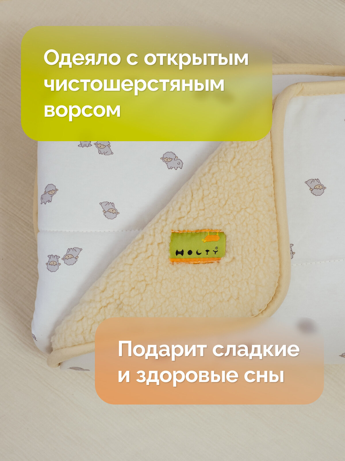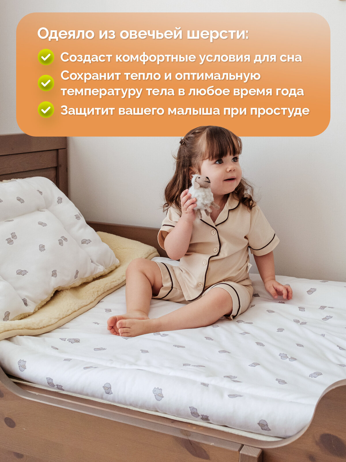 Одеяло из шерсти детское холти Фантазия (110*140), овечки интересное: