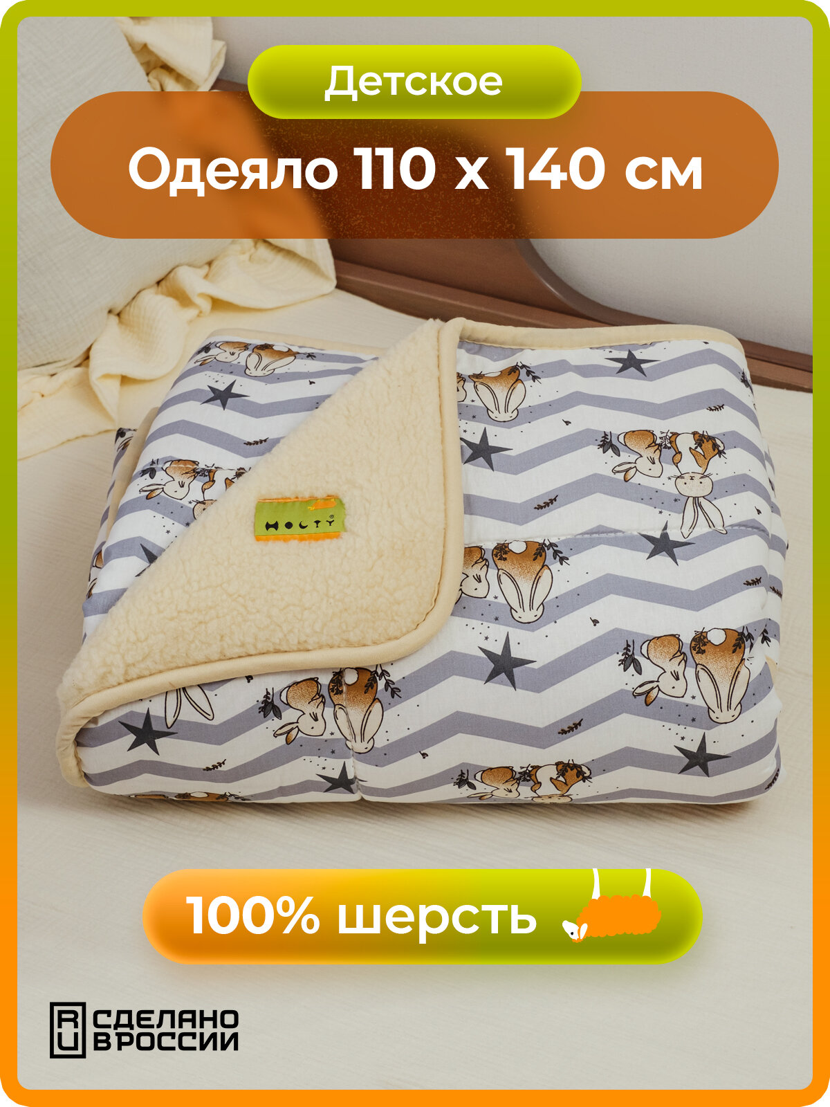 Одеяло из шерсти детское холти Фантазия (110*140), зайчики , серый интересное: