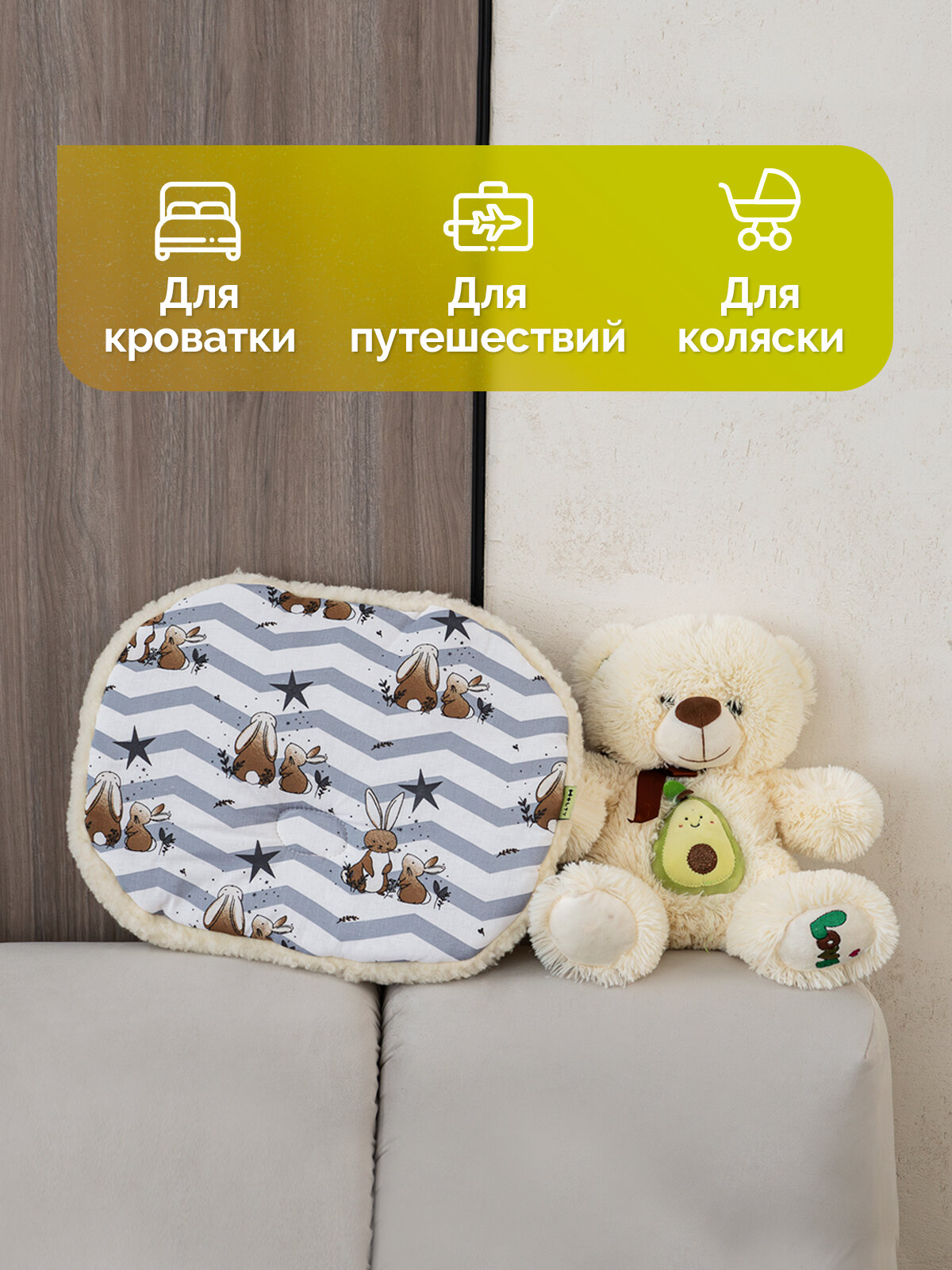 Подушка детская овальная 32х40 Холти шерсть подушка для младенца, белые зайцы
