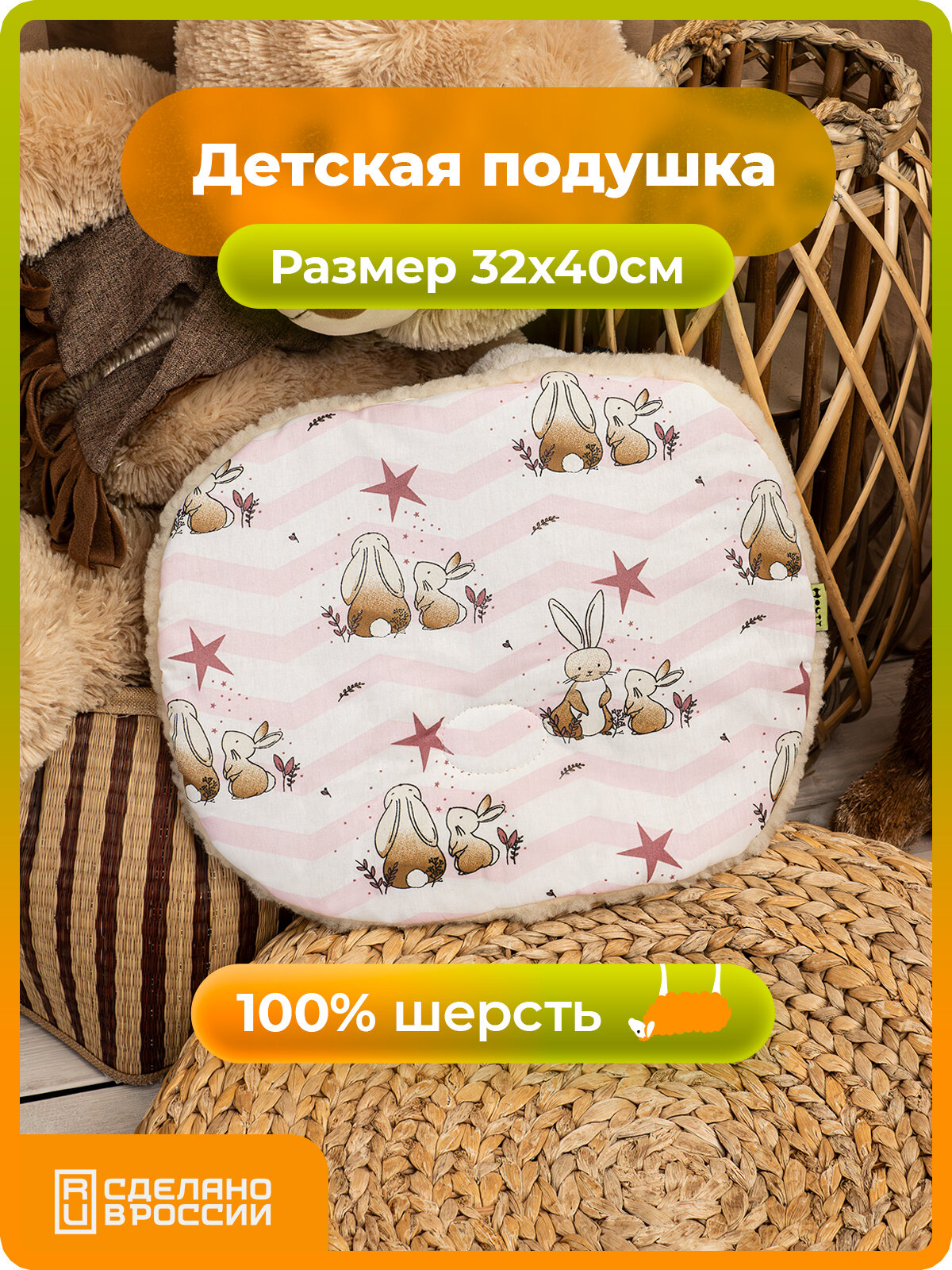 Подушка детская овальная 32х40 Холти шерсть подушка для младенца, белые зайцы