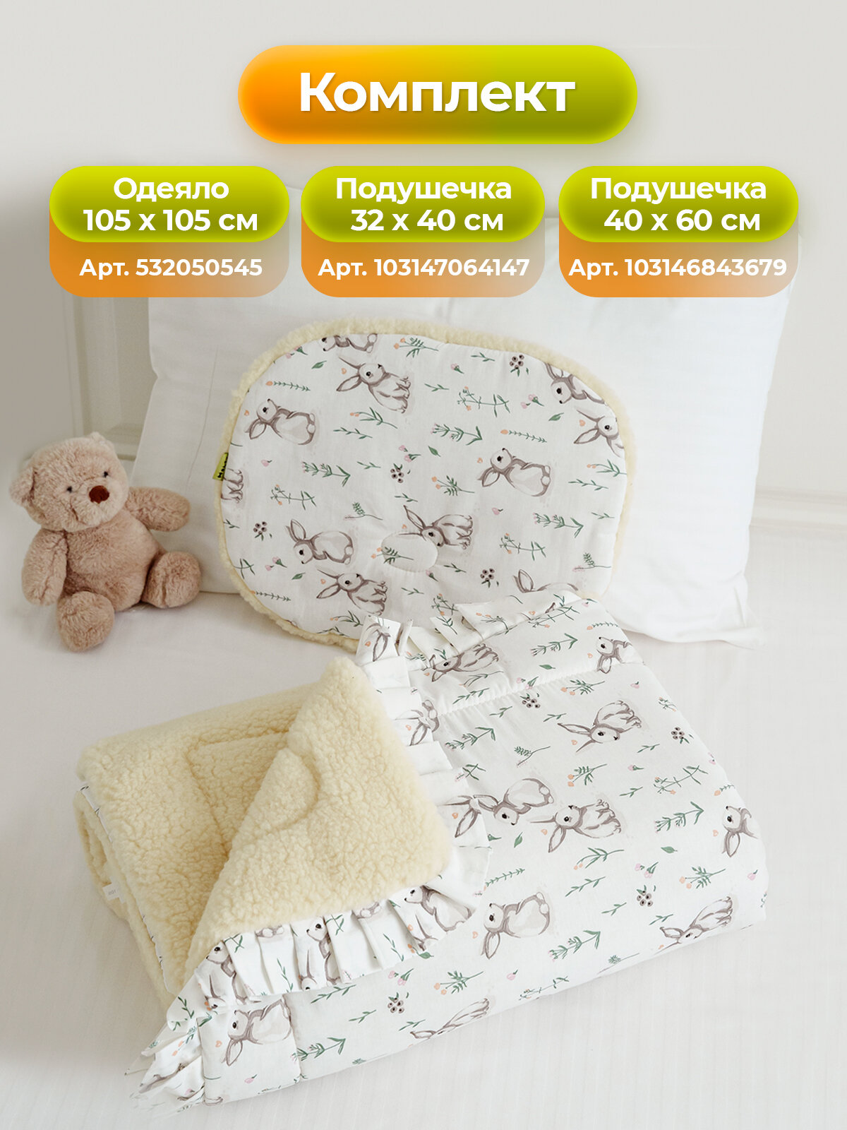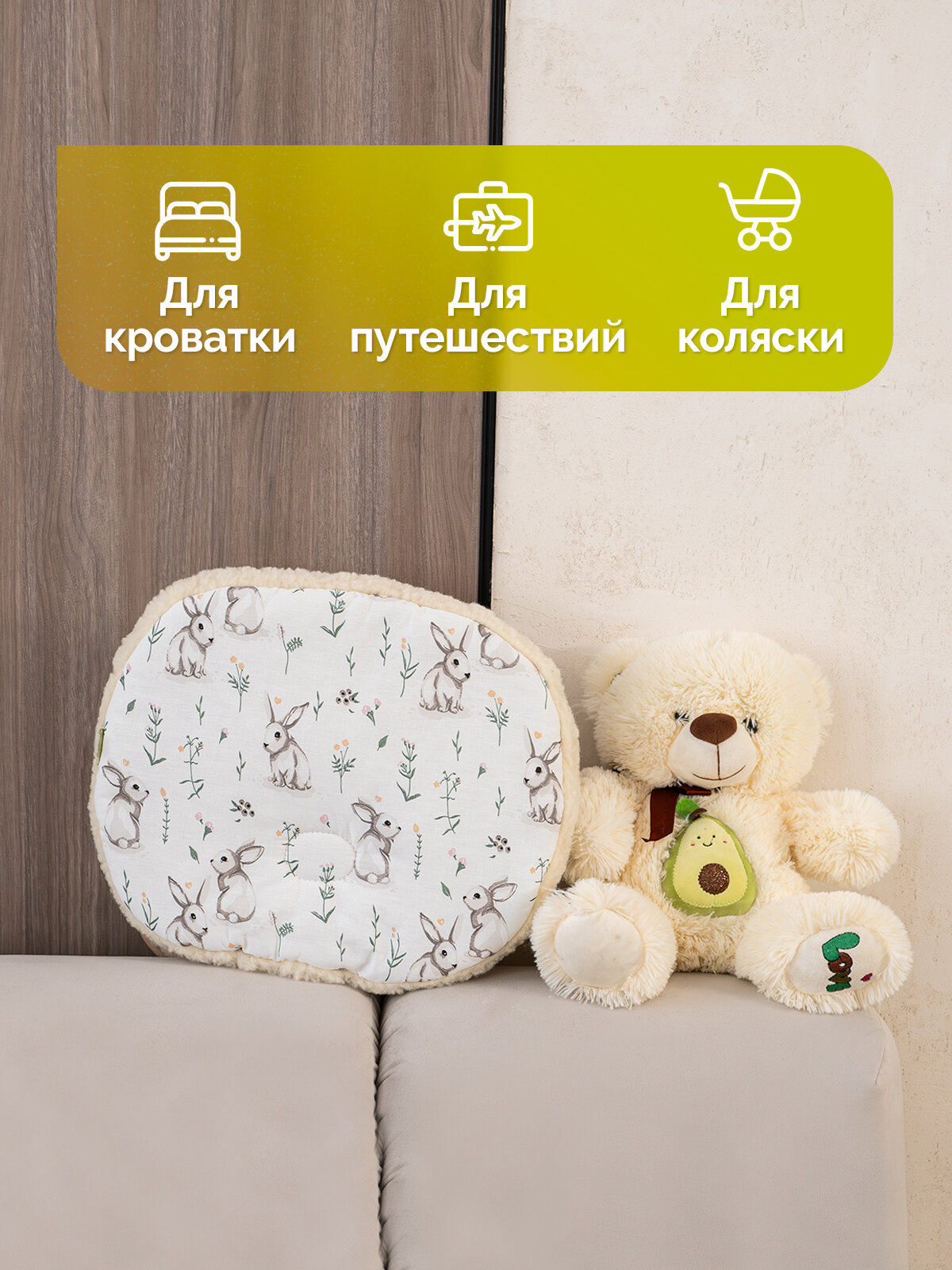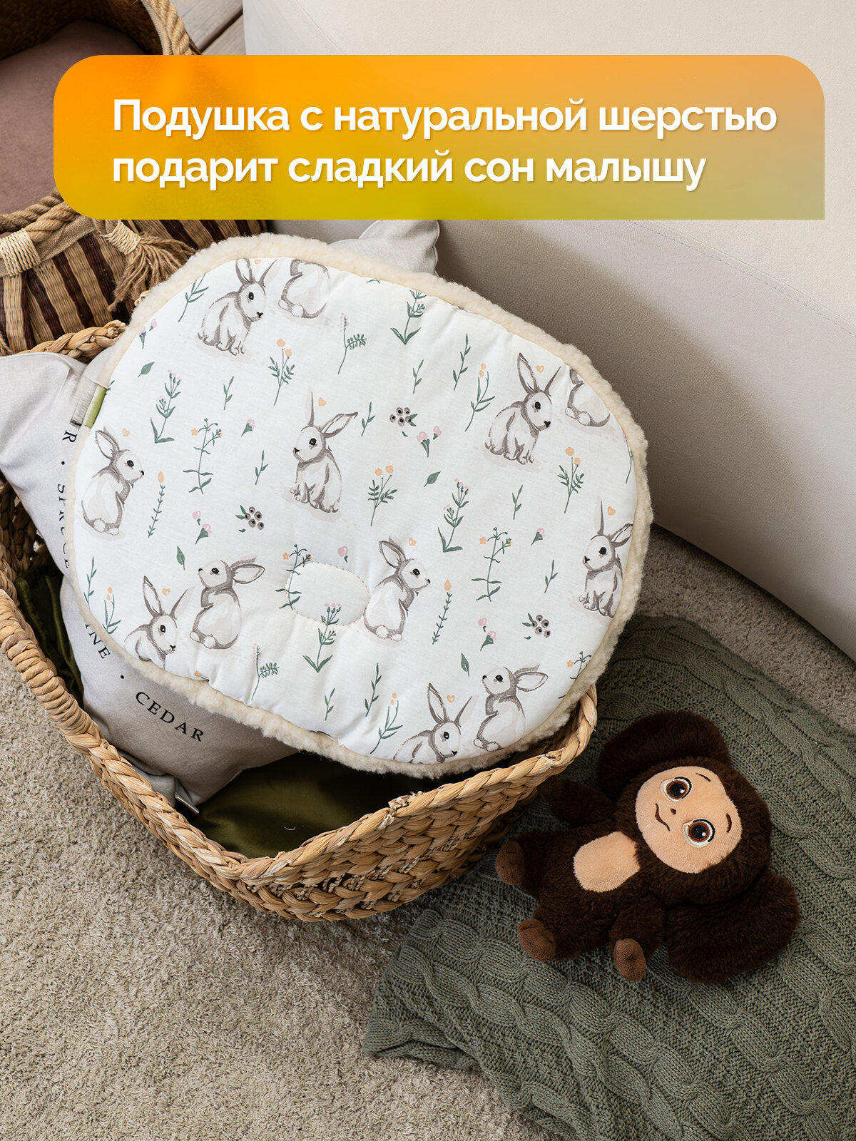 Подушка детская овальная 32х40 Холти шерсть подушка для младенца, белые зайцы интересное: