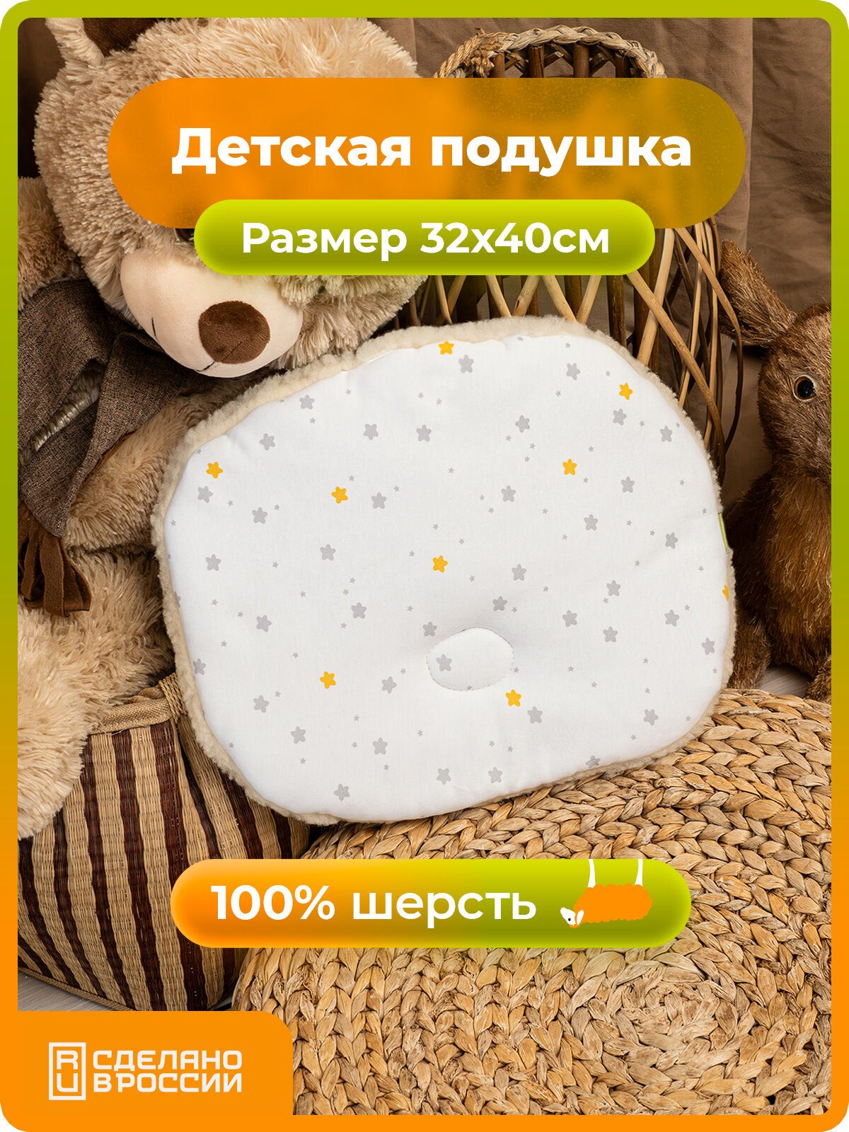 Подушка детская овальная 32х40 Холти шерсть подушка для младенца, звезды интересное:
