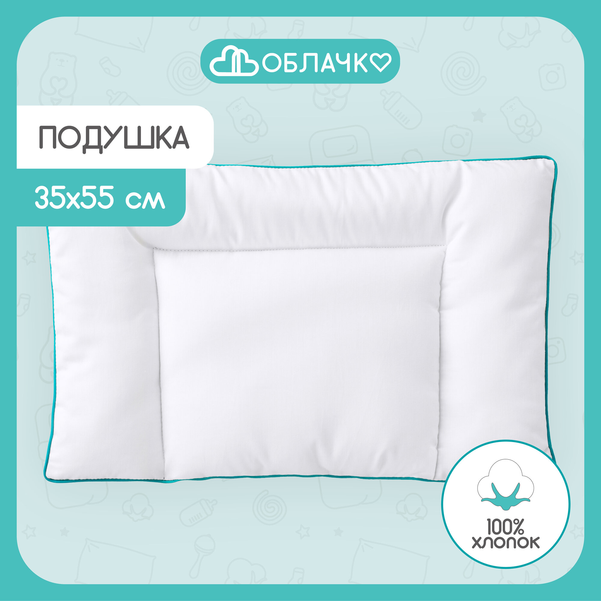 Подушка детская для сна 35х55 см Облачко, хлопок и заменитель лебяжьего пуха, гипоаллергенная интересное: