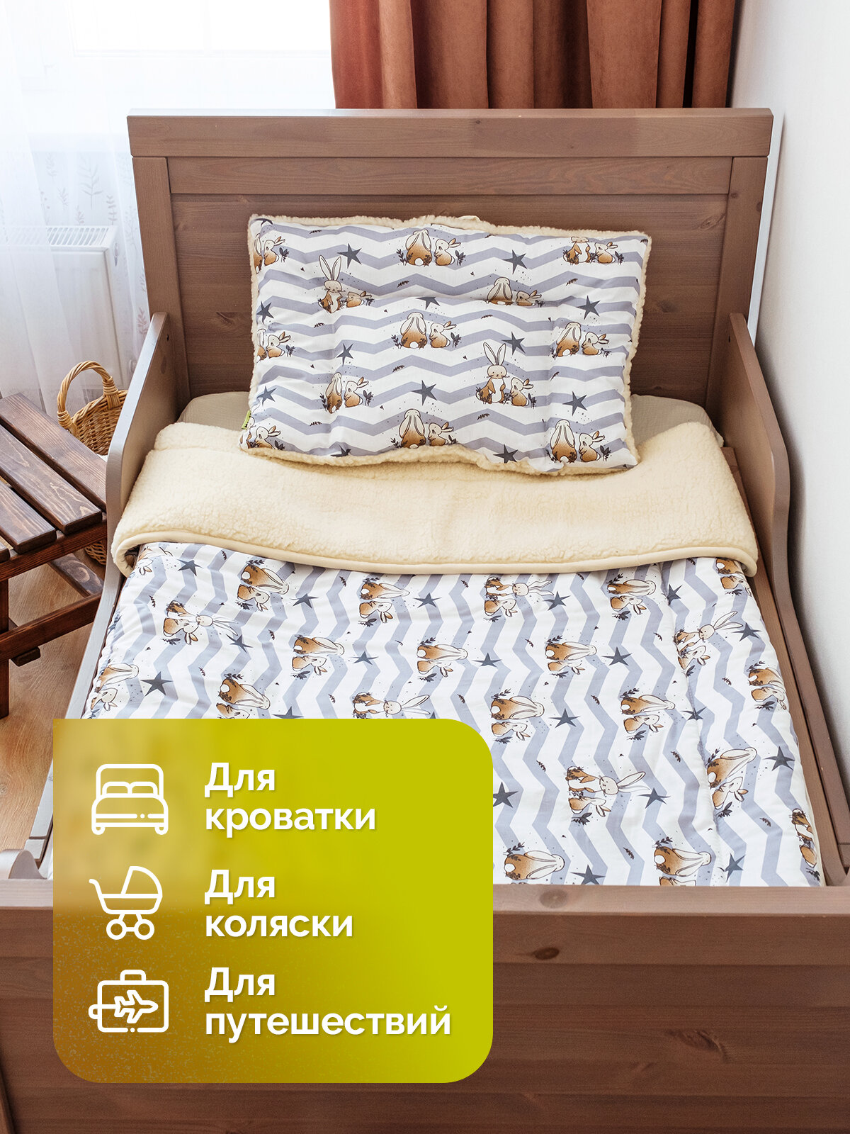 Подушка детская 40х60 двухкамерная Холти Зайчики шерсть подушка для сна, белый