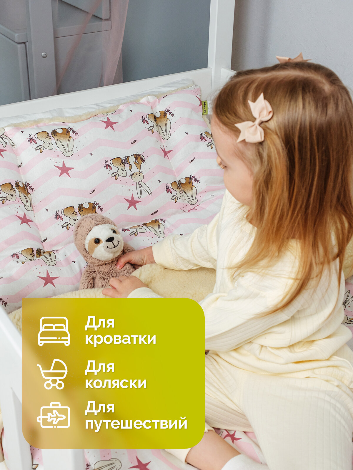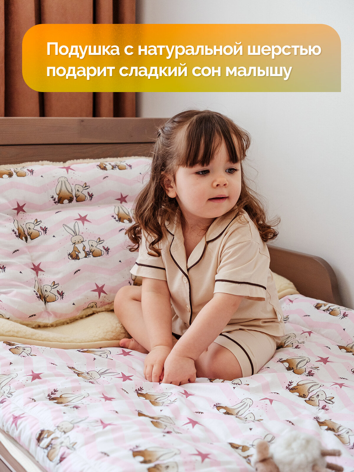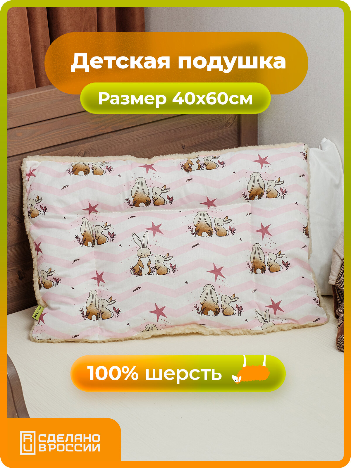 Подушка детская 40х60 двухкамерная Холти Зайчики шерсть подушка для сна, розовый интересное: