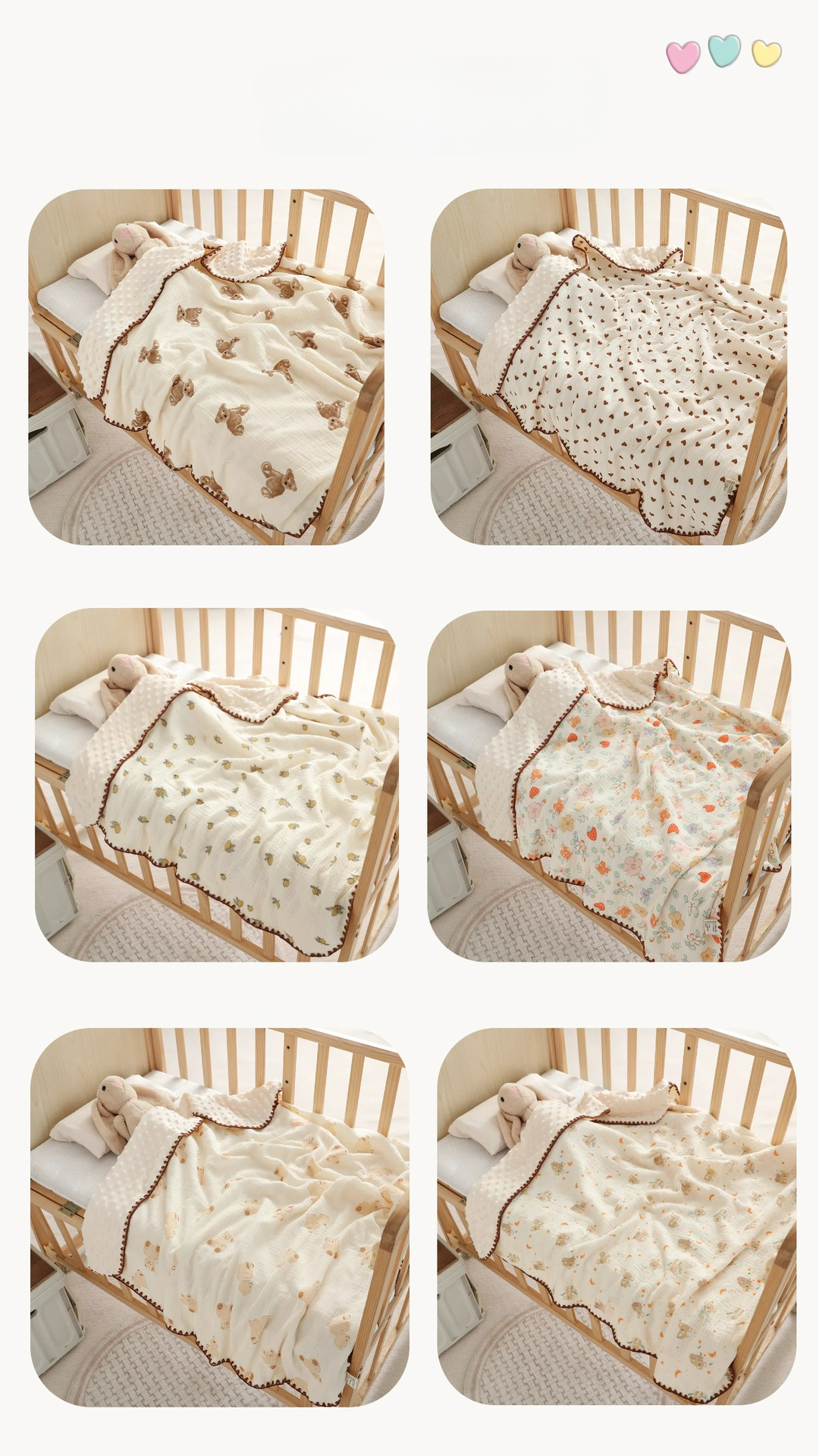 Детское покрывало в кроватку, 100x100 см, двухслойное, хлопок/плюш, белый с коричневым, сердечки