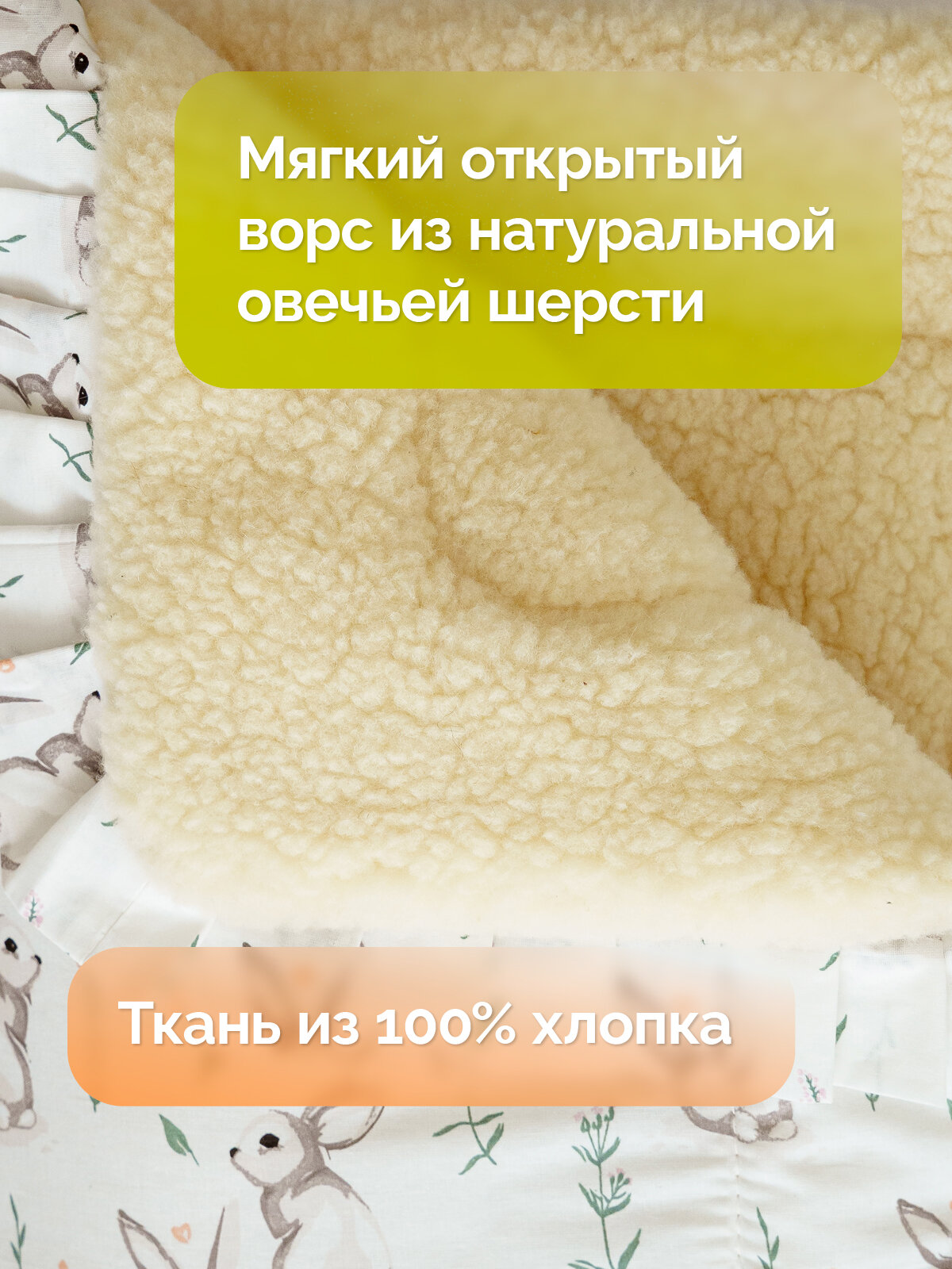 Детское одеяло для новорожденных в кроватку из шерсти Холти Малютка, конверт для малыша 105*105, овечки