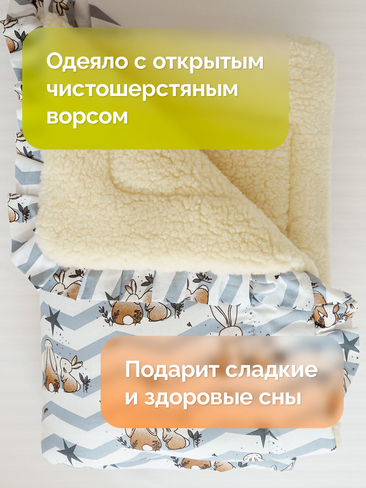 Детское одеяло для новорожденных в кроватку из шерсти Холти Малютка, конверт для малыша 105*105, овечки