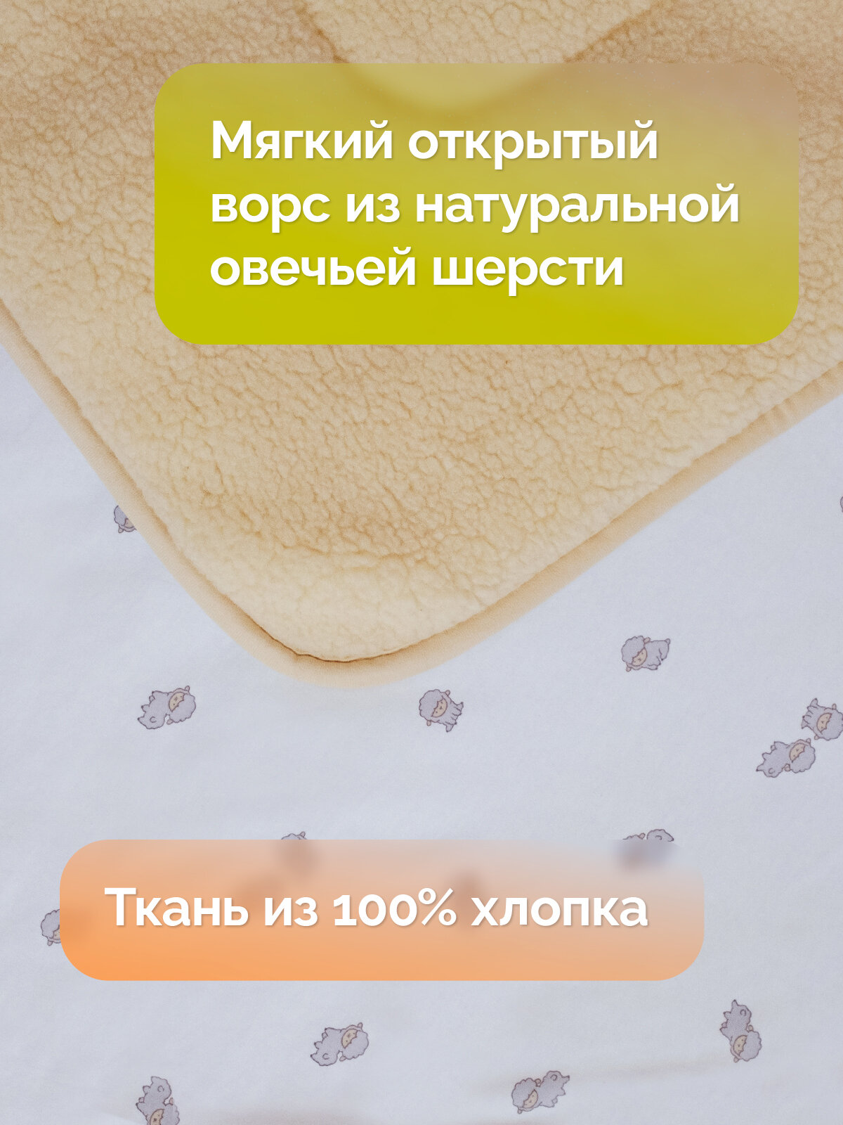 СохранитьДетское одеяло для новорожденных в кроватку из шерсти Холти Малютка, конверт для малыша 105*105, овечки интересное: